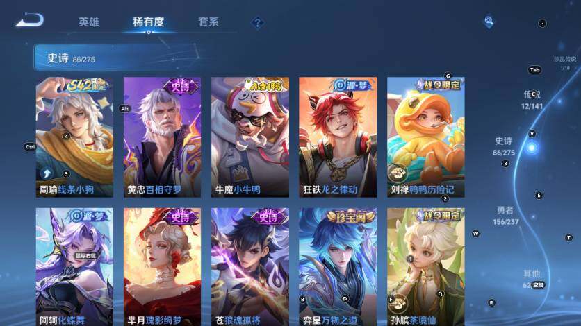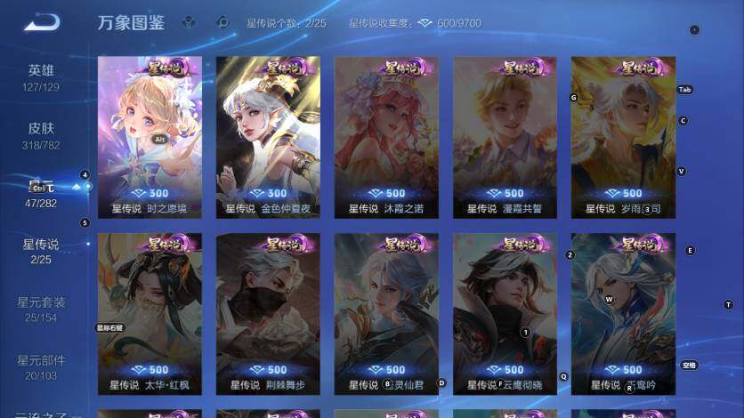 典韦穷奇,狂铁御狮,米莱狄御霄,牛魔御旌,盾山御銮,夏侯惇朔风刀,明世隐疑决卦,老夫子醍醐杖,鬼谷子原初探秘者,狄仁杰万华元夜,程咬金演武夺筹,钟馗驱傩正仪,苏烈千军破阵,元歌云间偶戏,弈星混沌棋,达摩沙漠行僧,兰陵王金庭之子,沈梦溪大漠名商,李元芳云中旅人,桑启海盐诗旅,裴擒虎擒涛扼浪,鲁班大师探海日志,张良古海寻踪