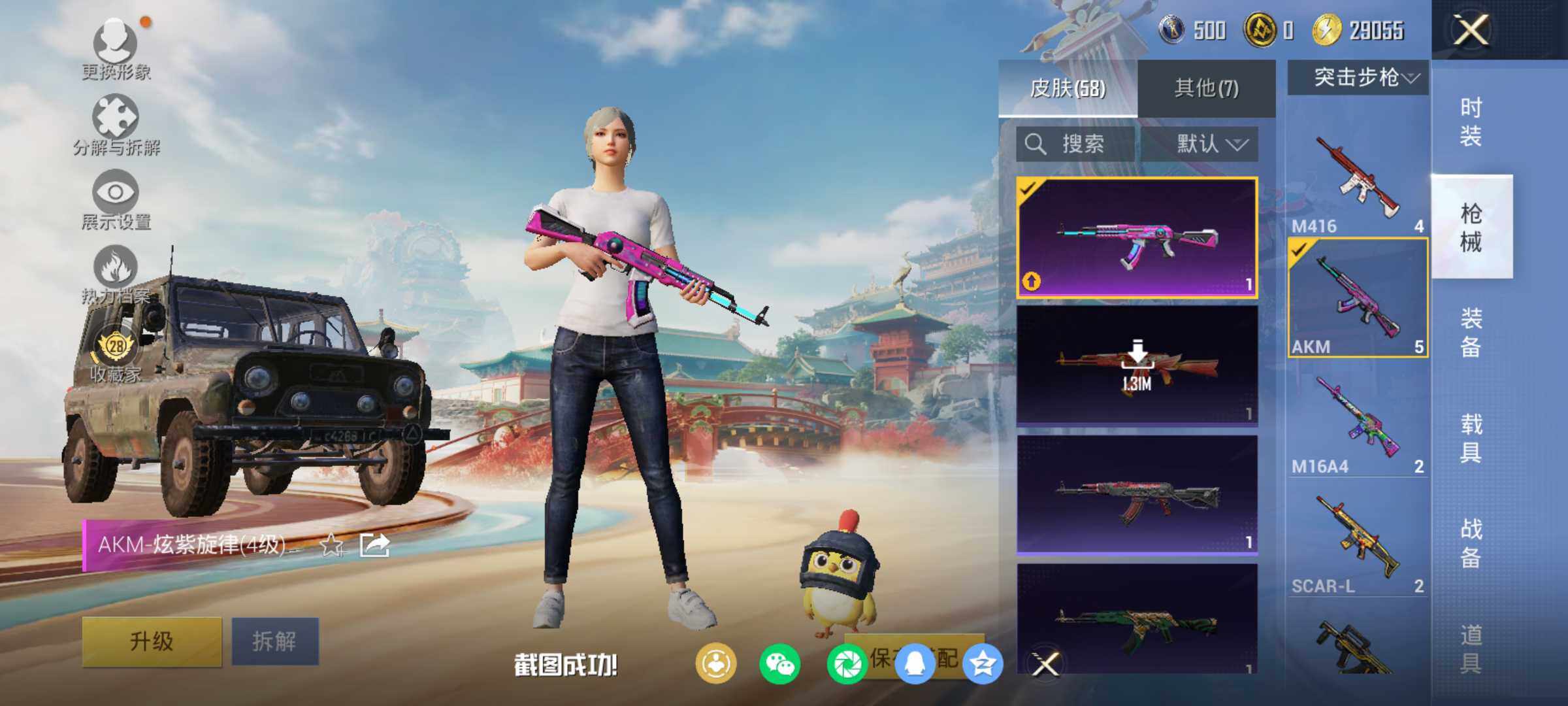 【粉色枪皮等级】:AKM-炫紫旋律(四级),Kar98K-巳巳如意(一级)