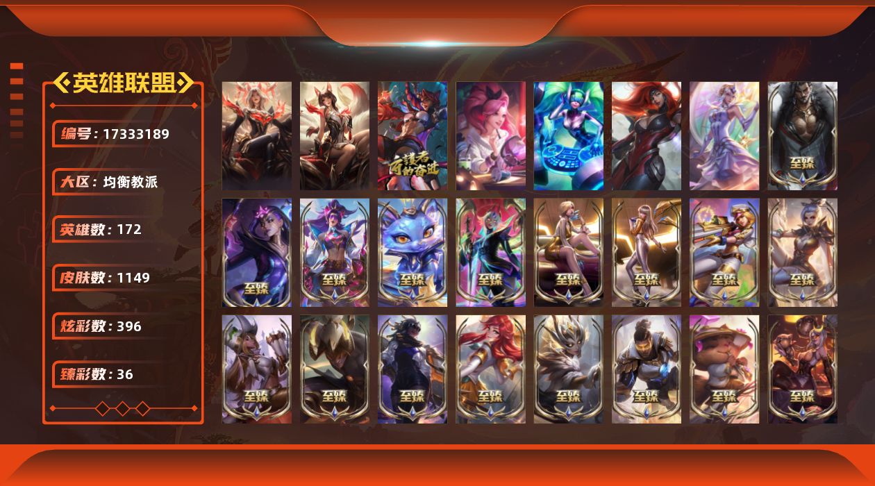 未定级段位-172英雄-1149皮肤-396炫彩-7终极-73神话-185限定-99传说-209史诗