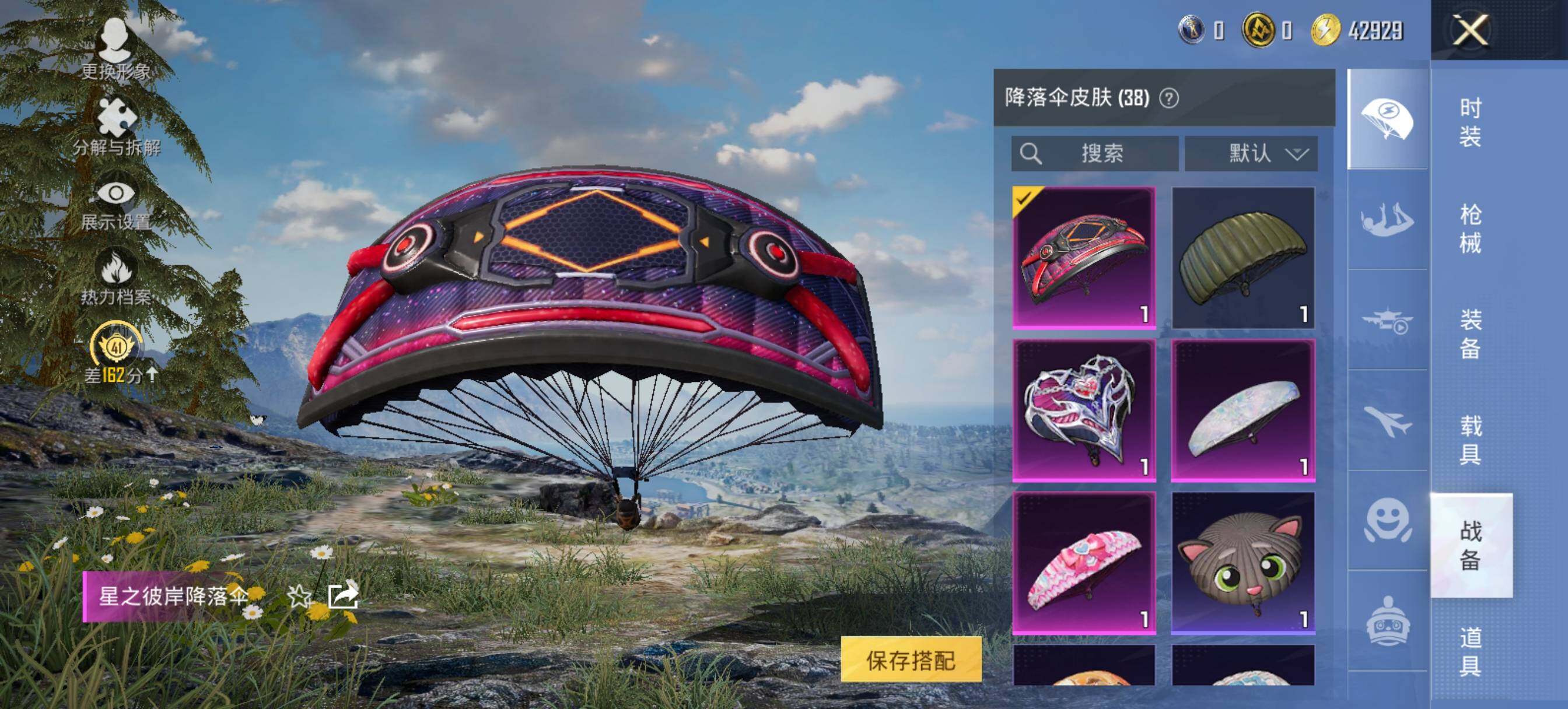 【粉色降落伞】:星之彼岸降落伞,光之祷告降落伞,樱桃泡泡降落伞,罪夜之冕降落伞