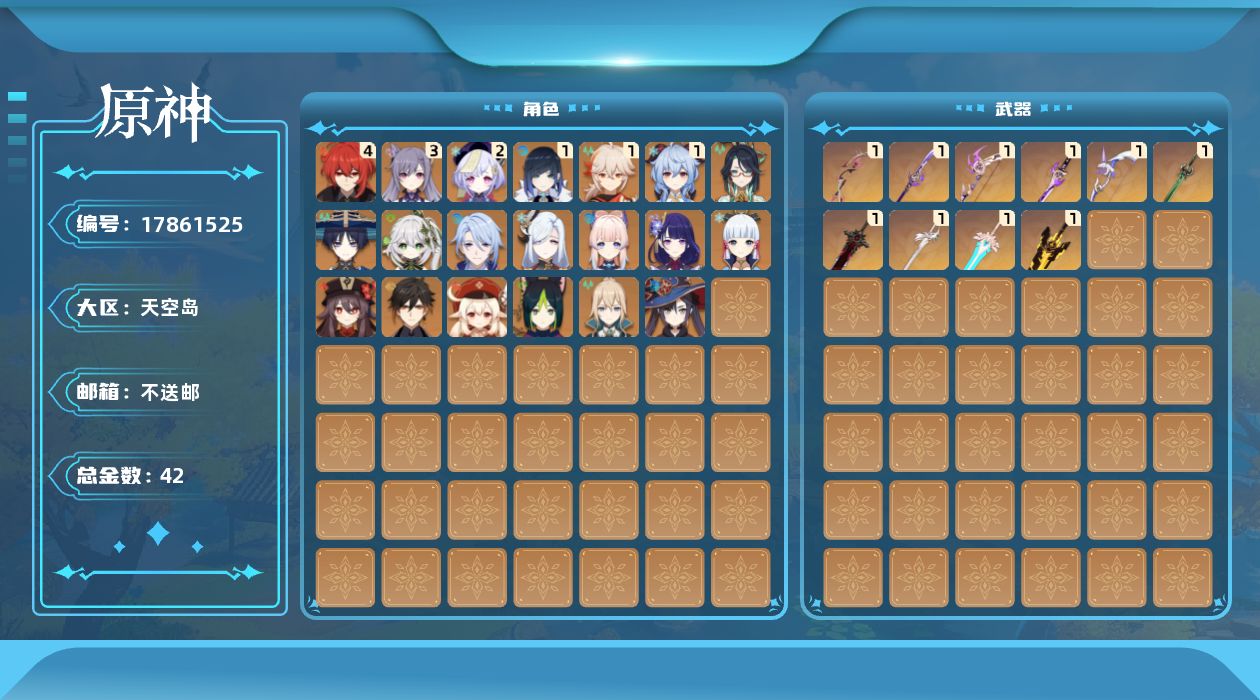 [17861525]59级/42黄/男主/20个五星角色/10个五星武器