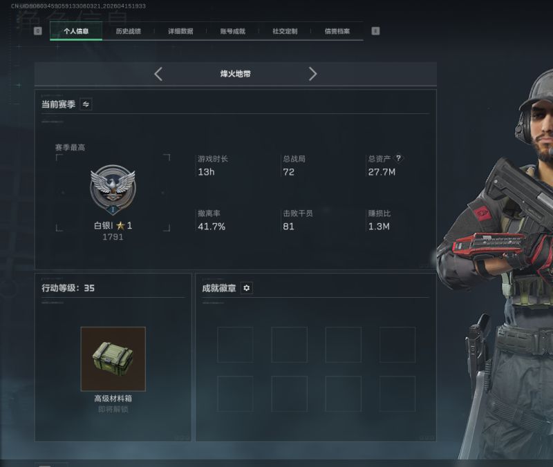 35级小号总资产27.7M 威龙红皮 女医金皮 3级处刑者 500三角卷