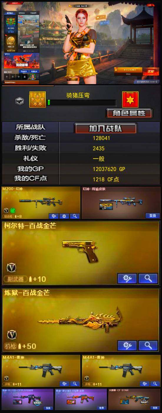 - [11872934]【商品标题】:江西一区-128V-12王者-1炫金 【传说角色】:传说女帝 【热门武器】:G36C-幻影,QBZ03-金色蔷薇,M14EBR-玄武,Scar Light-白虎,HK417-朱雀,M200-幻神,M200-竞技荣光,白虎-电玩蓝兔,柯尔特-冠军之特*3,荣耀世冠-柯尔特,M4A1-黑骑士*7,汤姆逊-烈龙*6,RPK-盘龙*6,加特林-炼狱*2,斯泰尔-蝴蝶,羊驼玩偶,USP-雷暴,COP-堕天神*2,沙鹰-修罗*2,Knife-冠军之刃*2,黄金猫猫手套-白鲨,金刚伞 【王者炫金武器】:炫金雷神 【音效卡】:M200-幻神音效卡,M4A1-雷神音效卡,M4A1-黑骑士音效卡,Barrett-毁灭音效卡,QBZ03-金色蔷薇音效卡,AWM-裁决音效卡,Scar Light-白虎音效卡,70KG语音包,绝迹语音包,白鲨语音包,N9语音包 【稀有皮肤】:M200-幻神-黄忠皮肤,幻神-周瑜皮肤,幻神-冠军之幻,幻神-宠儿-2021MVP,幻神-巅峰荣耀,M200-幻神-荣耀世冠白鲨,M200-幻神-N9-2022MVP,幻神-纸灯龙皮肤,白虎-大汉风骨,QBZ03-冠军之薇*2,雷神-荣耀之魄*2,雷神-耀金皮肤,雷神-冠军之魄*2,雷神-传奇N9,火麒麟-冠军之心,火麒麟-轻羽皮肤,火麒麟-平天大圣*2,火麒麟-心动糖果,黑骑士-暗月,黑骑士-冠军之势,黑骑士-CFS2021,黑龙-墨子皮肤,黑龙-冠军之武,毁灭-冠军之怒*2,毁灭-CFS2020,毁灭-黑大圣皮肤,M200-庆典-CFS 2021,AWM-CFS 2020,修罗-星空,修罗-冠军之魂,屠龙-荣耀之锋,擎天-冠军之击,龙啸-冠军之啸 【角色】:传说女帝,王者零-华冠丽服,王者-葵-貂蝉,王者葵-惊若翩鸿,王者春,王者-魅影,王者玲珑-小乔,樱,鹰,幽,蜀雪,铁骑荣耀,职业选手,青霞仙子,战地猎狐 【人偶武器】:斯泰尔-蝴蝶,白虎-迷你小艾,火麒麟-灵狐,黄金迷你深渊冰龙,迷你深渊冰龙,迷你艾比,迷你超能女侍,迷你巨石泰坦-魔花研究所,迷你裂空之翼,迷你牛魔王,黄金迷你裂空之翼,迷你波特博士,迷你曼提柯尔,夺魂,迷你牛牛,迷你火种,灵狐娃娃手雷,深渊终结者手雷,闪光弹-貂蝉,高爆手雷-大乔 【暴走生化】:斯泰尔-蝴蝶,超级对讲机 【挑战大师】:神圣爆裂者III,机甲撕裂者III,神圣爆裂