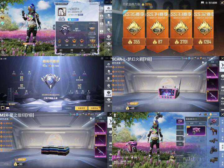 【粉色枪皮等级】:SCAR-L-梦幻火箭(七级),Kar98K-巳巳如意(五级),M24-星之信仰(七级)
