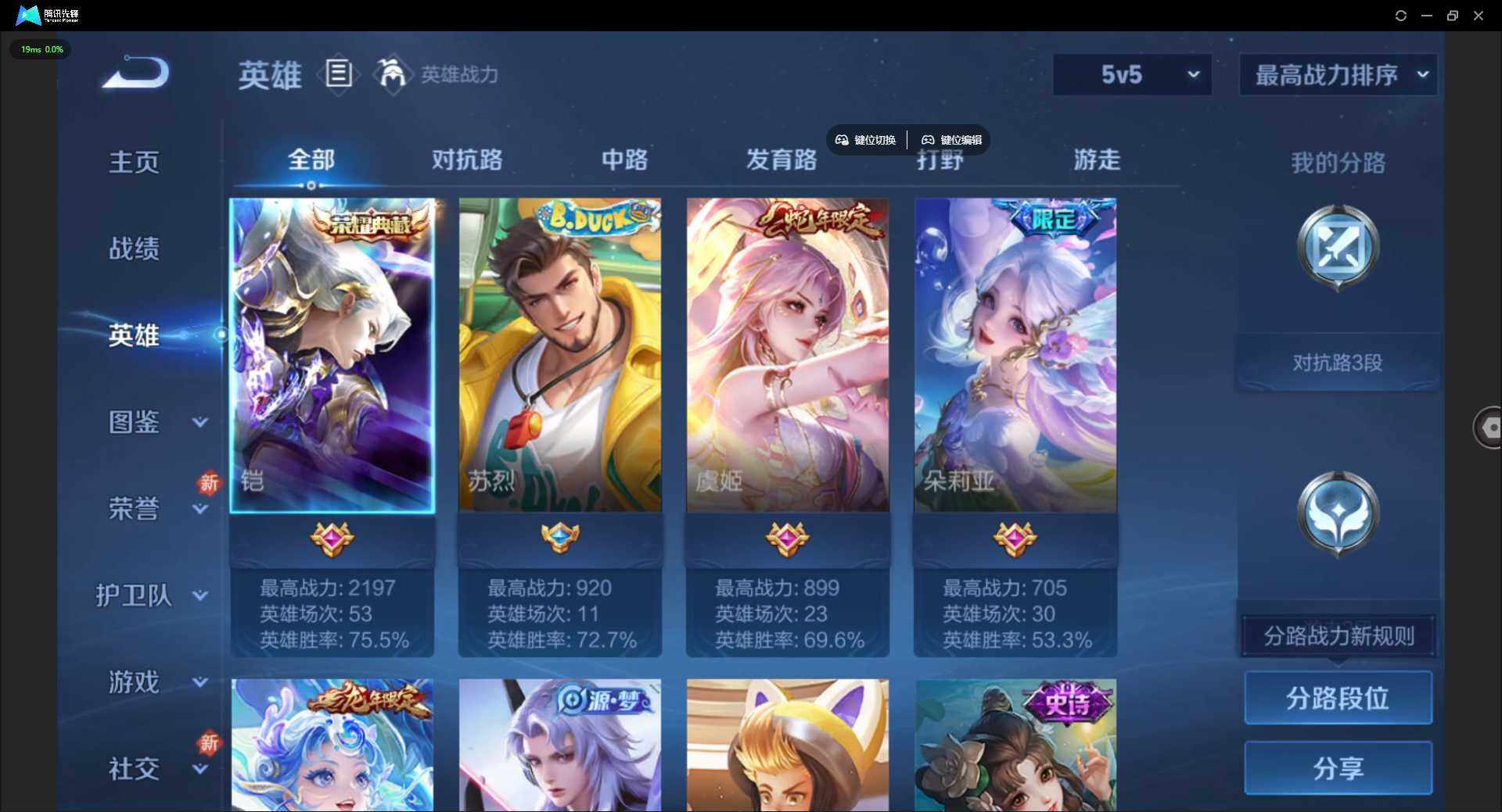 [12663691]安卓Q-V7-至尊星耀V段位-120英雄-129皮肤-1典藏-7传说-41史诗