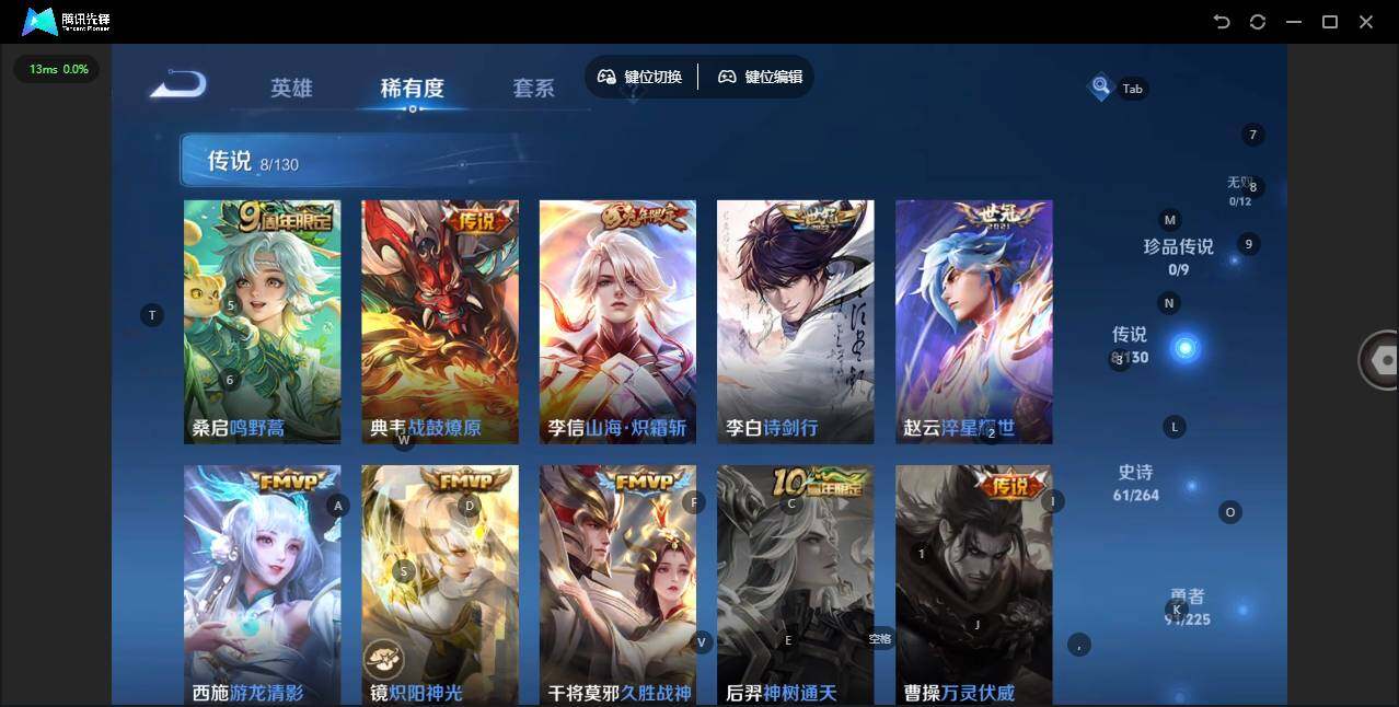 - PX_2093185-57 安卓QQ/至尊星耀/342皮肤/126英雄/1典藏/0珍品无双/0无双/0珍品传说/33传说/104史诗/10稀有英雄 【1 典藏皮肤】弑枪猎影 韩信, 【33 传说皮肤】鹤归松栖 云缨,启明星使 虞姬,电玩·雷克斯 澜,白虎志 百里玄策,李逍遥 曜,齐天大圣 孙悟空,凤求凰 李白,诗剑行 李白,仲夏夜之梦 貂蝉,惊梅引 宫本武藏,祈雪灵祝 公孙离,鹤羽星尊 诸葛亮,