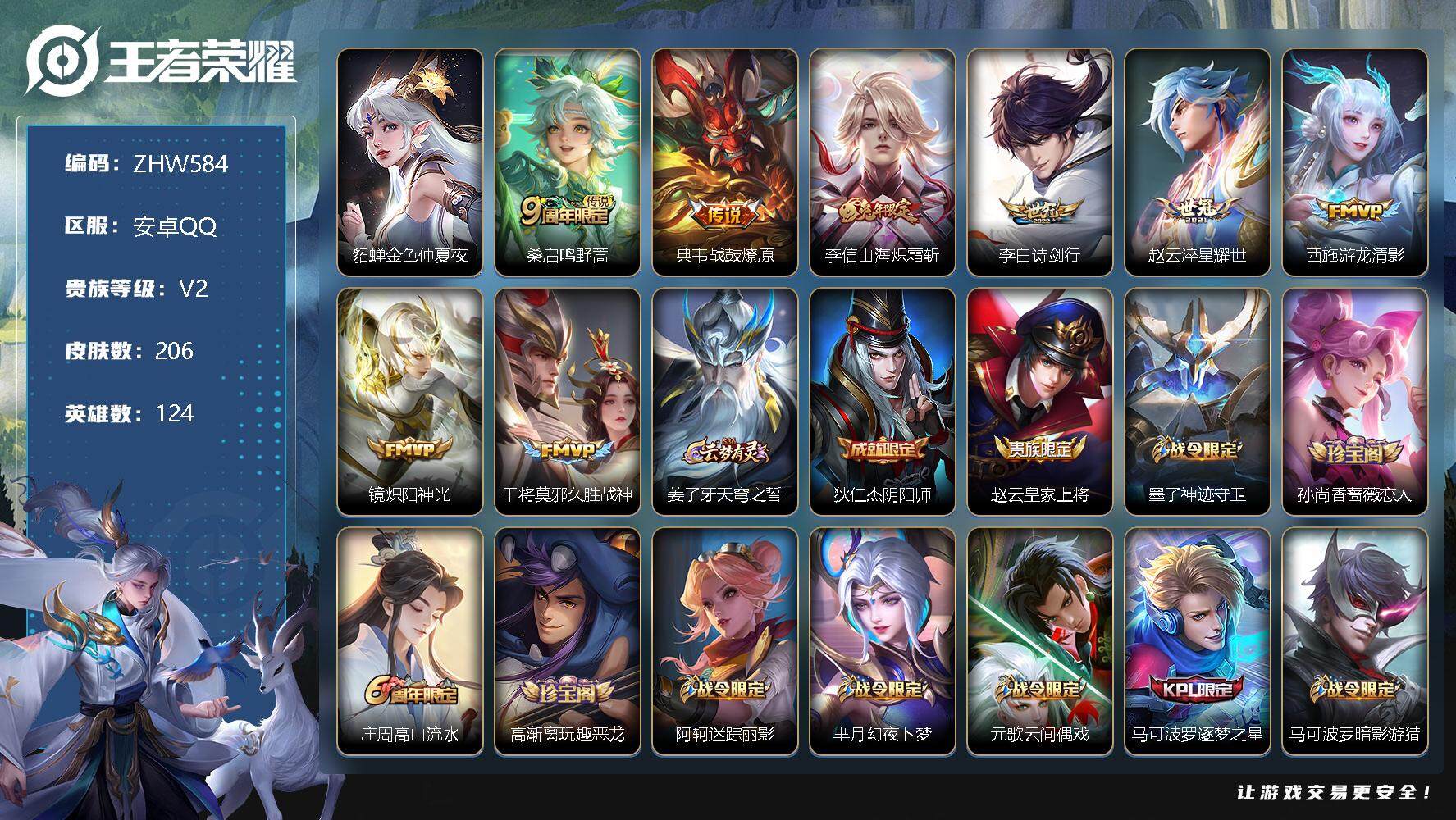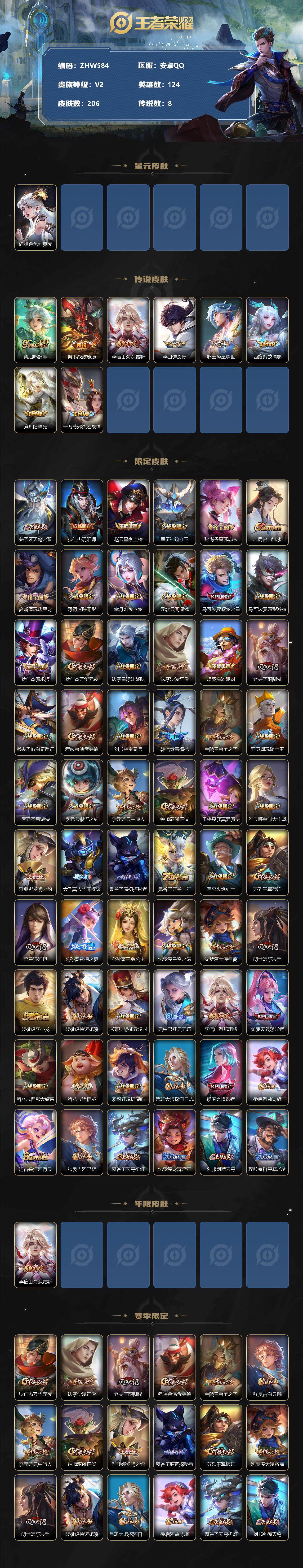 [12663685]【特价急出/详情看图】安卓Q-V2-永恒钻石V段位-124英雄-206皮肤-8传说-62史诗