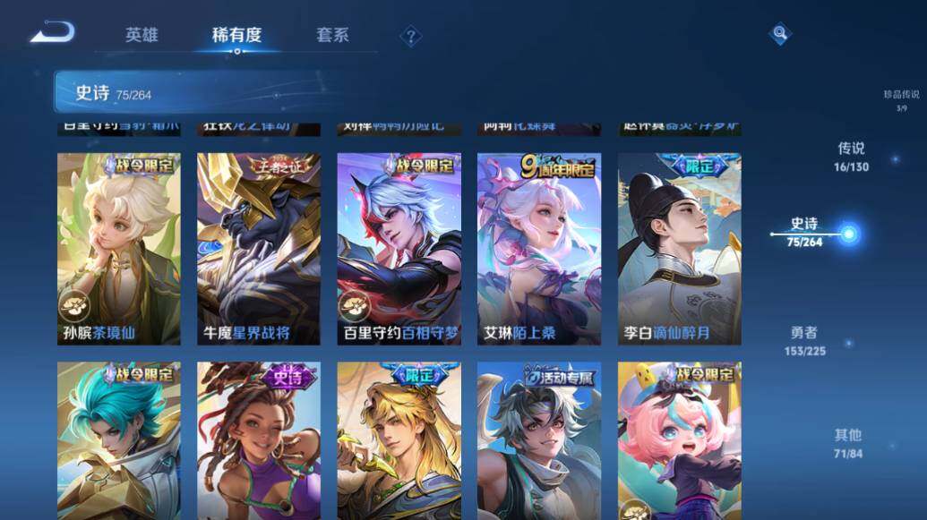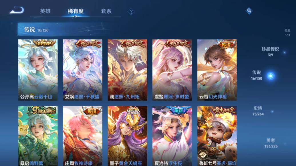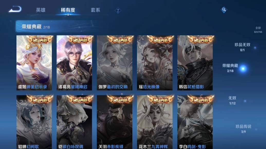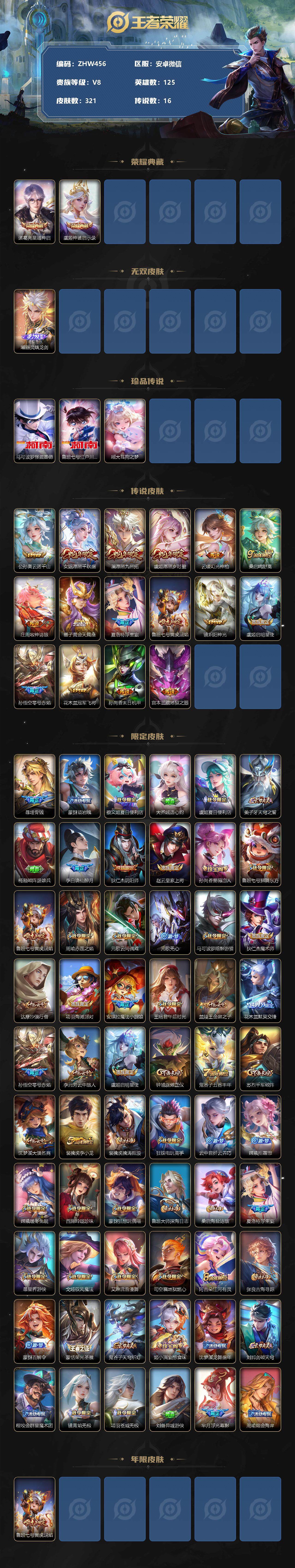 [12665885]安卓WX-V8-最强王者段位-125英雄-321皮肤-2典藏-0珍品无双-1无双-3珍品传说-16传说-75史诗