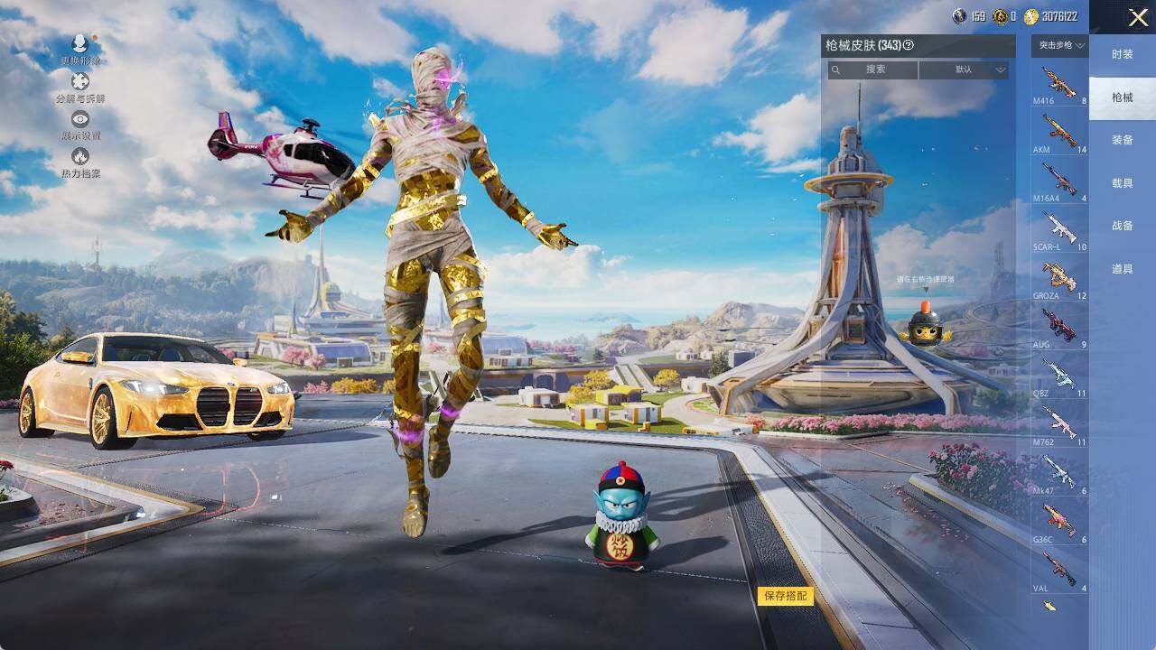 AKM-甜心宝贝,SCAR-L-青春物语,SCAR-L-纯梦嫁纱,M416-心之恋语,M416-至情至圣,GROZA-焦糖拿铁,AUG-星之彼岸,AUG-妙趣可丽,UMP45-相思残雪,P90-沙丘之主,Kar98K-巳巳如意,VSS-烈焰拳霸,M249-蓝莓炮弹,MG3-洛神天依