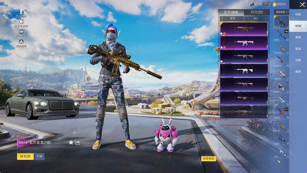 AKM-绿萝繁花,M16A4-葫芦兄弟,SCAR-L-青春物语,M416-五爪金龙,M416-电玩时刻,Vector-环太平洋,Kar98K-巳巳如意,MG3-洛神天依