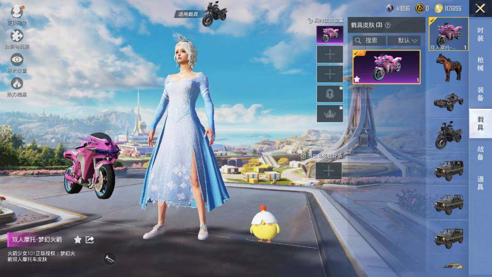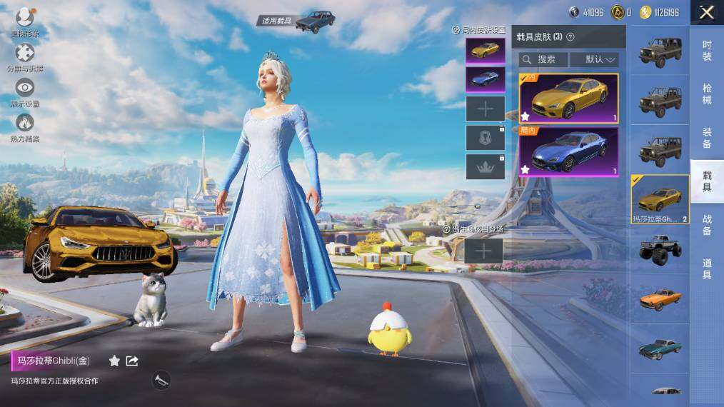 【粉色载具】:玛莎拉蒂Ghibli(金),玛莎拉蒂Ghibli(蓝),双人摩托-梦幻火箭