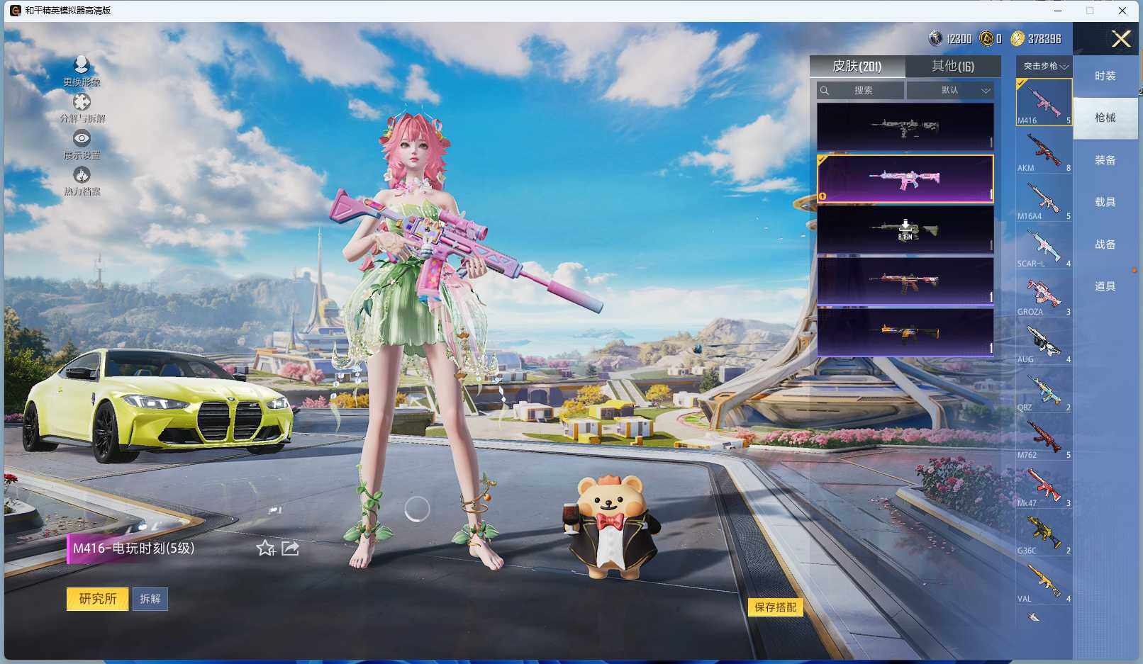AKM-绿萝繁花,M416-电玩时刻,GROZA-旋转彩虹,Kar98K-巳巳如意,PKM-江南烟雨