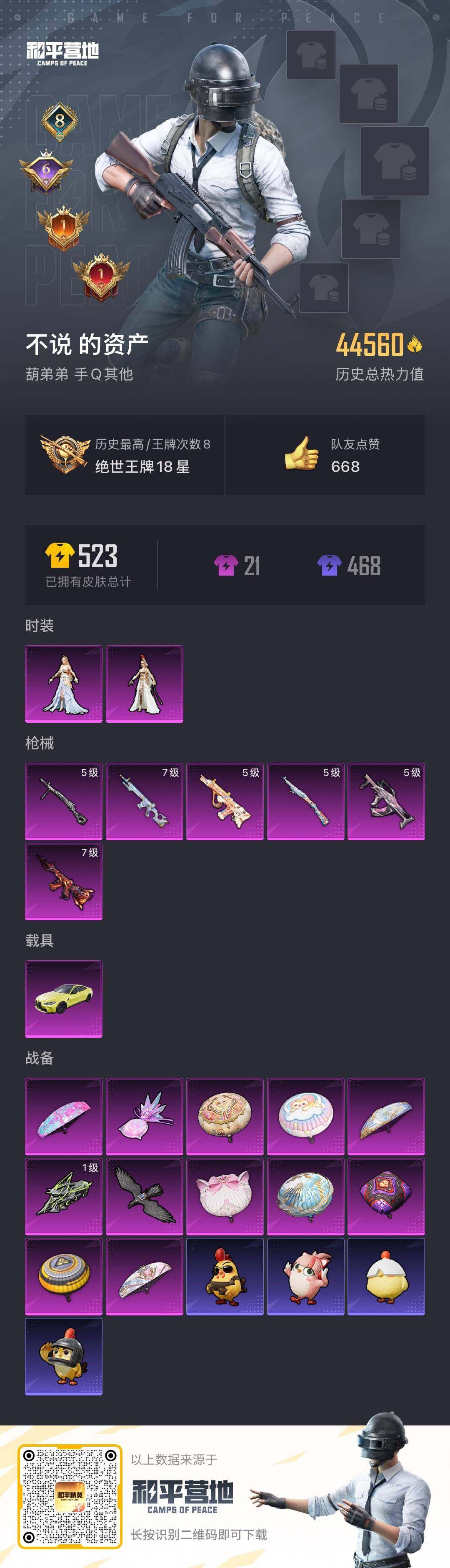 - [12296349]16粉装 4特效枪 1载具 9印记 可二次 可修改实名 优质装备:晶梦灵驹,甜心巧克力,梦幻火箭(新101)(新火箭少女101粉色套装),宝贝奶油派,天使彩虹糖,缤纷油彩(猪妹猪脸妹),UMP45启明星,M417第五大道,七级M417-第五大道,七级UMP45-启明星,狂魅哈莉,奇迹舞步-雅雅,奇迹舞步-美琪,羊梦糖心,Kar98K-巳巳如意 热门装扮:暖熊萌萌,冰川粉黛,冰川幽秘,音爆索尼克,白勺歌姬,圣堂之誓,金丰海韵,动感兔斯基,激萌罗小黑,鹰眼刺客 稀有枪皮:DP-28-豹影疾电 五级特效枪:五级Kar98K-巳巳如意 四级特效枪:四级DP-28-豹影疾电 紫色装扮:SS23特训,SS31特训套装,SS33特训套装,SS21特训,熠彩粉晶,苍岚星,照水倚天,田园牧歌,轻风白浪,和煦暖阳,SS22特训,莱茵河畔,香榭午后,吉莉礼服,夏日倾情,幻世战舞者,萌趣咩咩,灵公主,灵幻魔术师,娇憨猪猪,天籁歌者,SS20特训,甜心亚梦,虚音幻奏,粉团憨憨,梦幻奶油,酸甜橘柚,樱桃黑巧,软羊咩咩,英勇保护者,青年教官,飞行日记,魅力单车,麻辣教官,黎明保卫者,黑色伏地魔,龙的传人,龙魂突击队,酷潮明星,长空猛禽,清新柠檬,湖蓝色名流,牛气满满,探宝勇士,极地朋克,水手小飞鸭,竞技达人朋克,红色运动,绮丽涂鸦,绵云熊熊,缤纷果语,蓝彩潮人,狂沙舞者,猛禽,空岛之星,破晓战魂,破蛋小黄鸡,短笛,SS29特训,奶油梦幻熊,热情海星,鱼渊荷华,玉兔迎春,燕燕于飞,巳巳如意,红潮炫舞,智谋强哥,小狗蛇点点,晶辉守护,晶灵使者,竞技名士,摩登魅猫,红熊茄茄,纯真浪花,惊鸿侠骨,粉红小猪,SS24特训(SS24特训套装),SS25特训,锦衣飞扬,菲菲,傲娇队长,童真绒兔,Alan Walker,浪漫天命,SS26特训,春光漫游,快闪甜心,玲珑飞花,格斗专家,耀粉歌者,大橘大利,SS32特训服(SS32特训套装),瑰梦爱神,绯格组合,雪夜云雾,光之冒险,初雨海棠 优质战备:奇迹舞步降落伞,精灵梦叶罗丽降落伞,公主华盖飞行器,深渊漩涡飞行器,宇宙意志降落伞,莲影清波降落伞,千金淑猫降落伞,镜域双华-灵镜之阶,蜜语绒猫降落伞,沙丘之主降落伞,晶梦幻蝶降落伞,旋转彩虹降落伞,歌者泠鸢飞行器,暖熊萌萌降落伞,环太平洋降落伞,未来战士降落伞,甜心宝贝降落伞,春暖花开降落伞,梦幻火箭降落伞,梦幻
