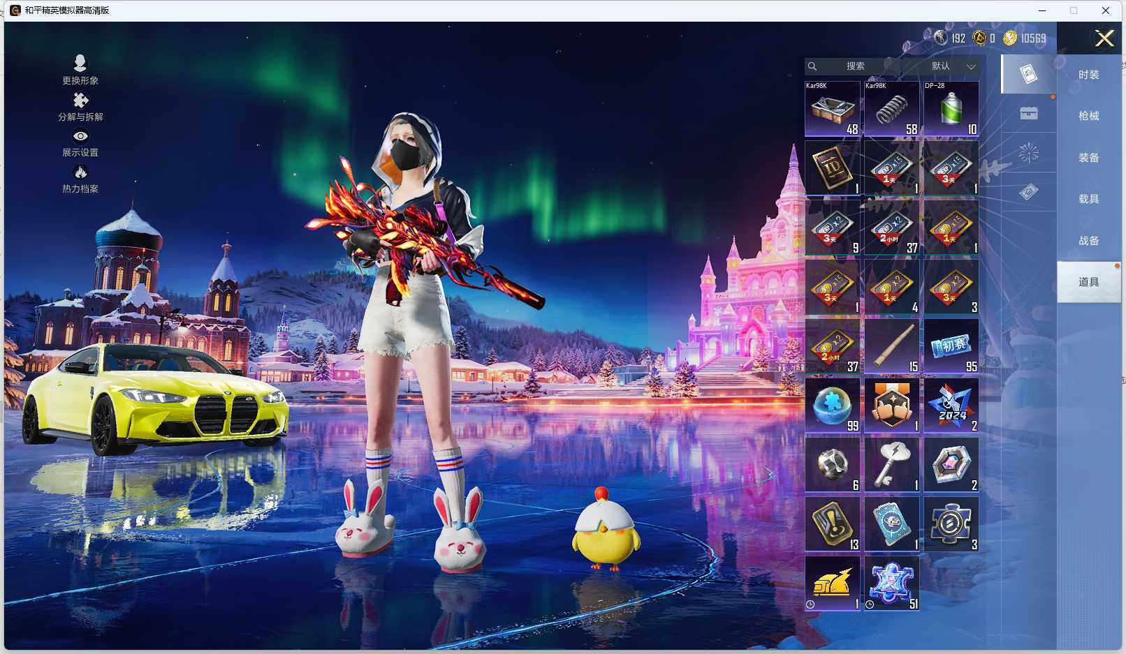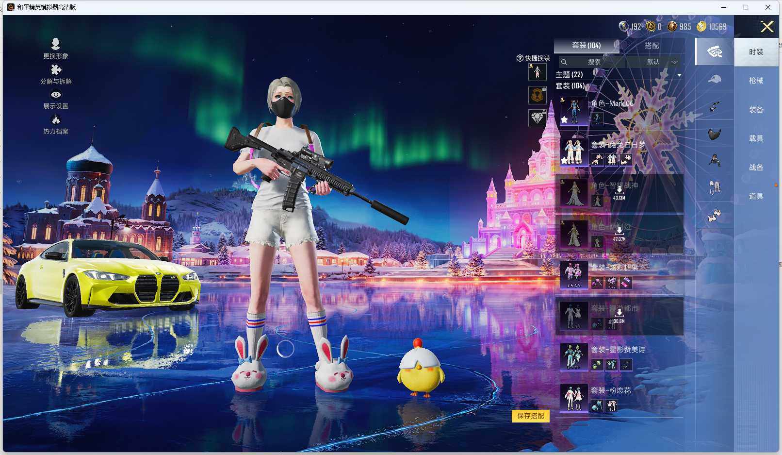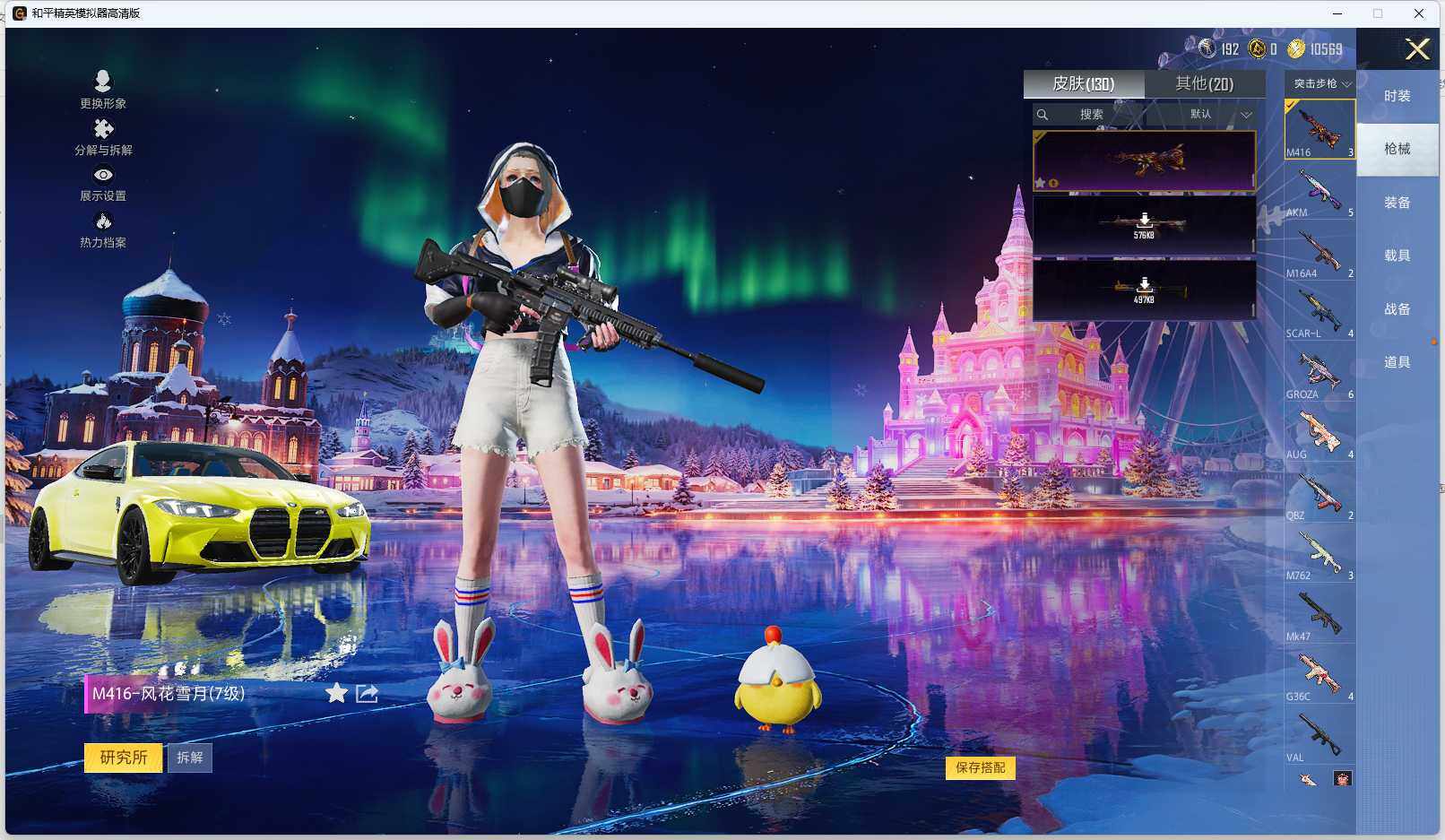 M416-风花雪月,GROZA-镜光银凌,AUG-暖羊咩咩,Kar98K-巳巳如意,MK12-雪月幻音