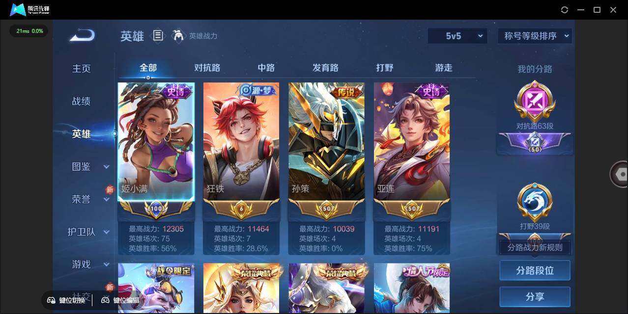[14158355]【店主推荐捡漏号!可直接换绑】小国1.2w姬小满 1.1w狂铁 1.1w亚连 万战孙策 对抗路63段 打野39段 安卓Q-V8-最强王者段位-127英雄-288皮肤-2典藏-3星传说-16传说-100史诗