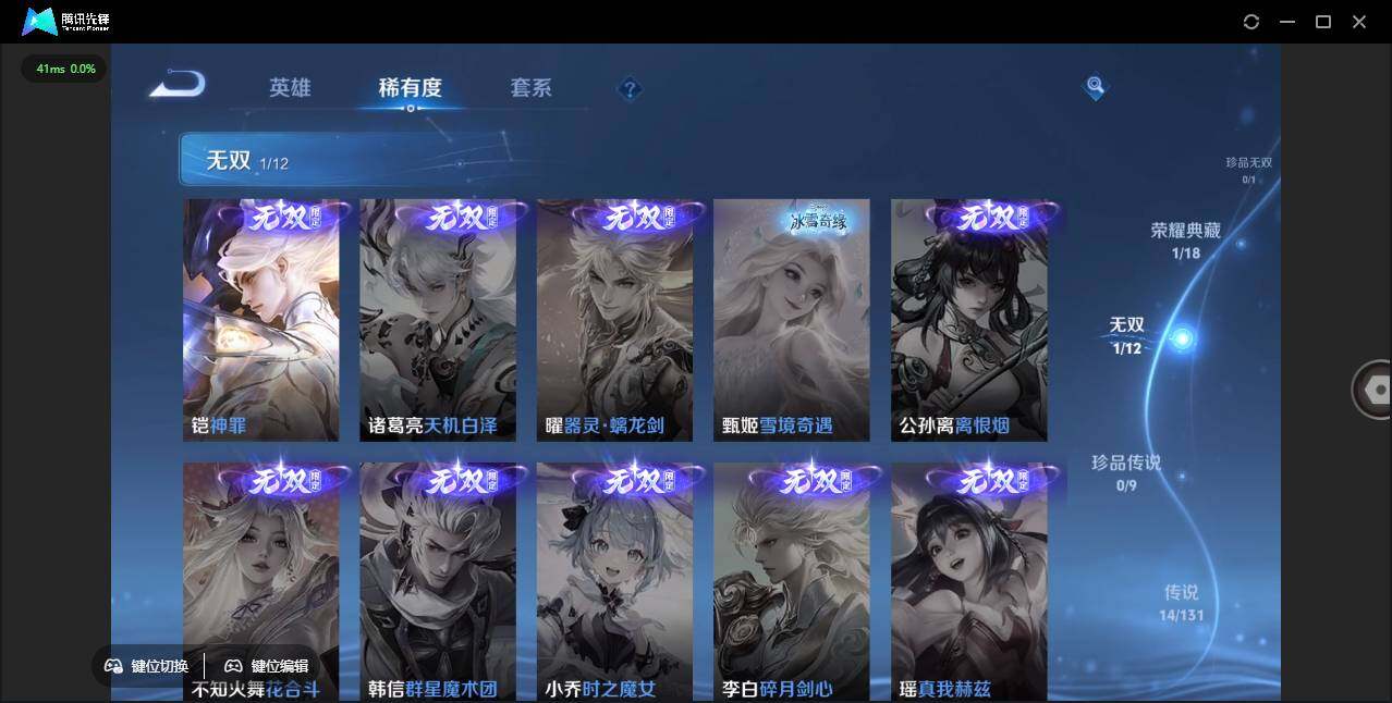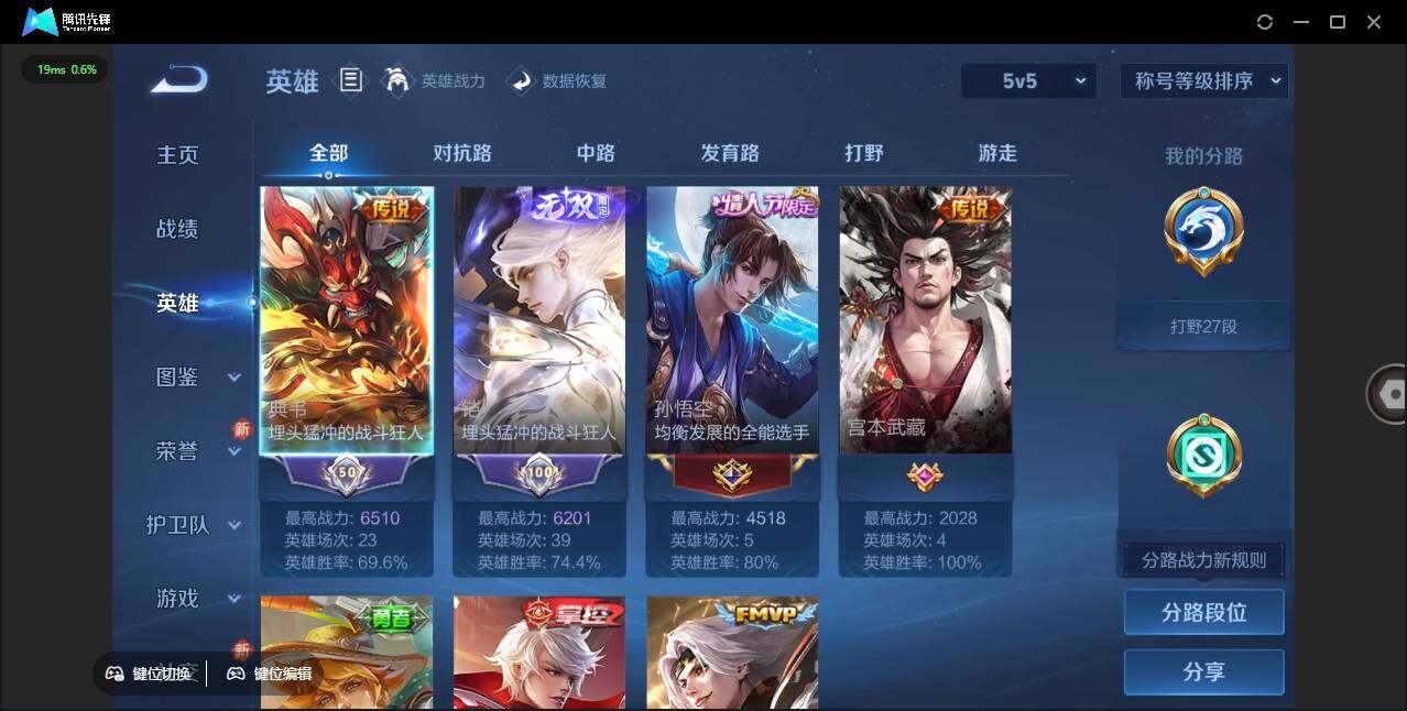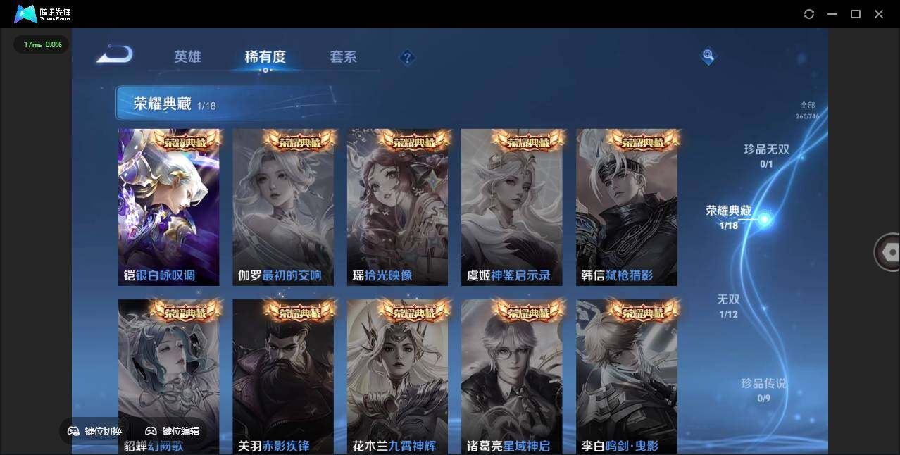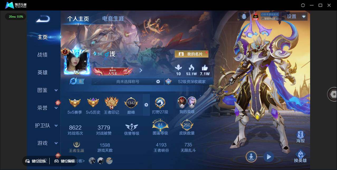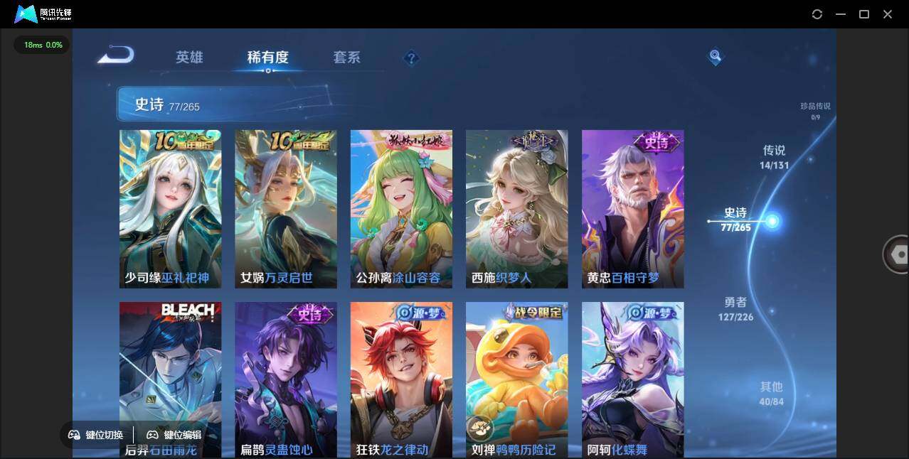 - [11547703]V7 1无双 2珍品传说 10传说 88英雄 99皮肤 可修改实名 优质装备:器灵·螭龙剑,朽木白哉,黑崎一护,地狱火,碎云,妄想实况,澜逐花归海 传说皮:云诺千山,续相思,幻光神枪 限定皮:愿照·九州拓(澜年限),愿照·山河定(司空震年限),傲雪梅枪,诗剑行,降魔,山海·玄木吟(马可年限) 史诗皮:鸭鸭历险记-刘禅,器灵·浮梦炉,绮世丹青,瑰影绮梦,化蝶舞,灵蛊蚀心,龙之律动,藏狐·褐绒,小牛鸭,石田雨龙,百相守梦-周瑜,茶境仙,紫霞仙子,白龙吟,特工魅影,闲日渔趣,偶像歌手,乱世虎臣,水果甜心,星夜王子,德古拉伯爵,天秀·启明,乘风破浪,水晶猎龙者,鹰眼统帅,赏金猎手