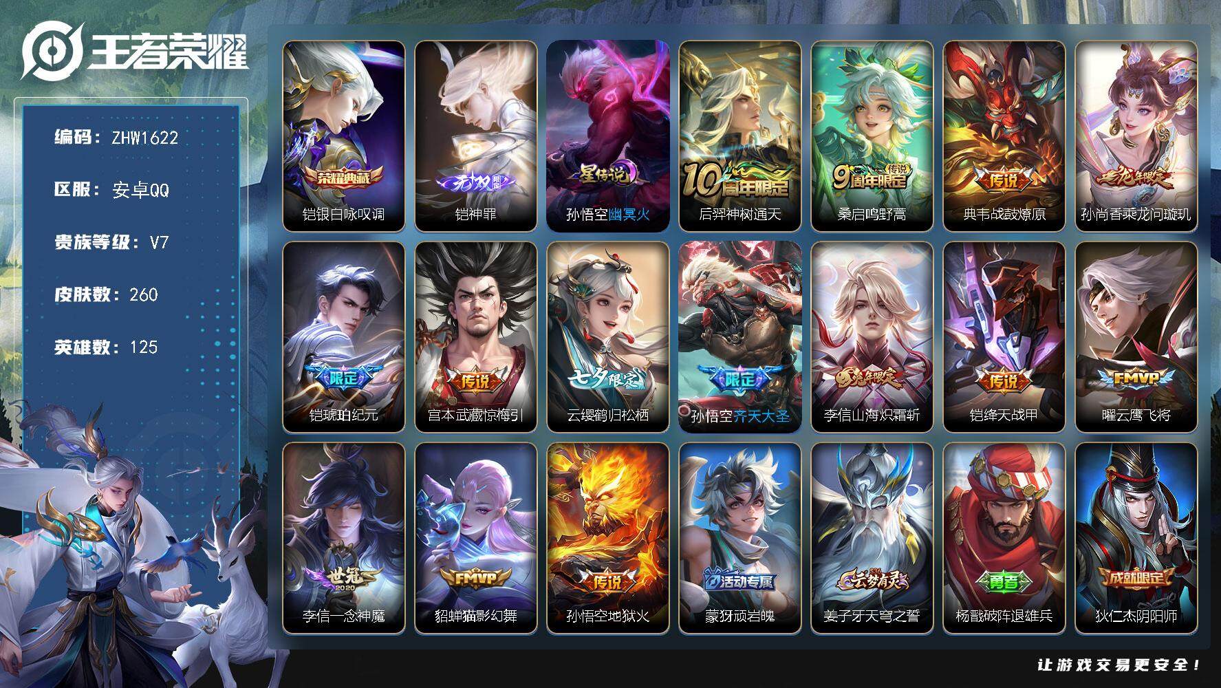 [14158440]【店主推荐捡漏号!可直接换绑】安卓Q-V7-最强王者段位-125英雄-260皮肤-1典藏-1星传说-1无双-14传说-77史诗