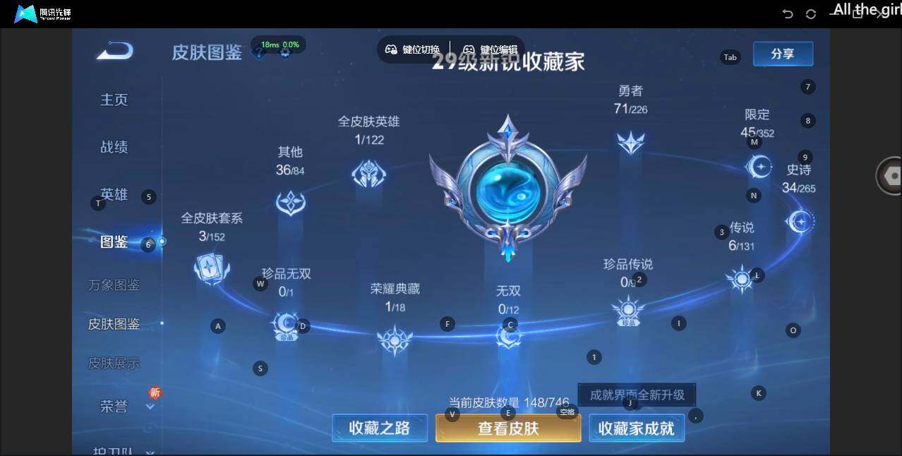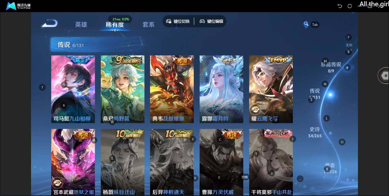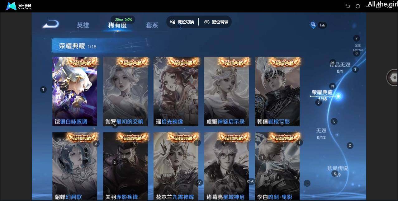 - PX_2108150-Q/绝世王者/379皮肤/126英雄/2典藏/0珍品无双/1无双/4珍品传说/24传说/115史诗/10稀有英雄 【4 珍品传说】酷洛米之心 安琪拉,大耳狗之梦 瑶,怪盗基德 马可波罗,兔狲·蓬尾 张飞, 【2 典藏皮肤】倪克斯神谕 武则天,弑枪猎影 韩信, 【1 无双皮肤】花合斗 不知火舞, 【24 传说皮肤】启明星使 虞姬,白虎志 百里玄策,云鹰飞将 曜,游龙清影 西施,