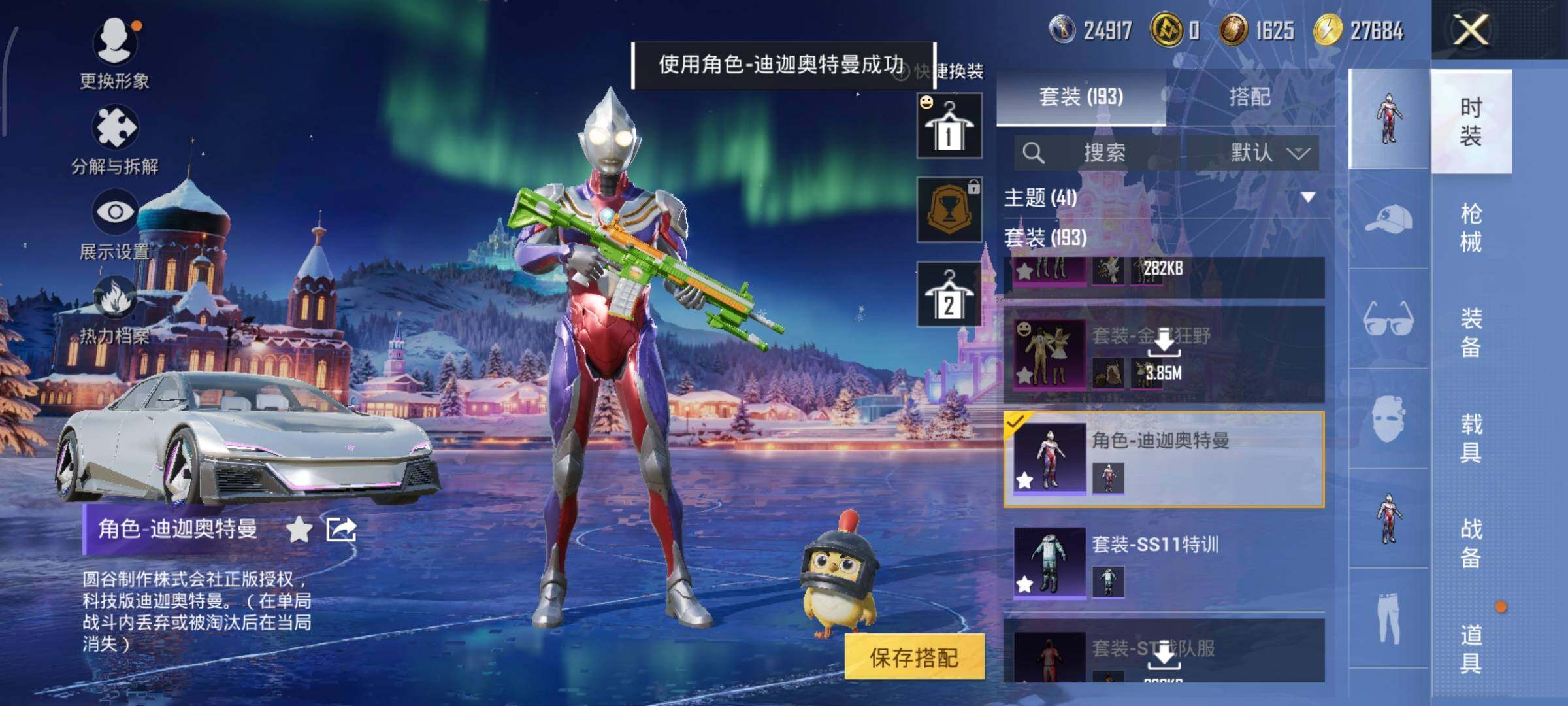 套装-浪漫天命,套装-暗夜之虎,套装-龟仙人,套装-暗影哥特,套装-极速红龙,套装-狂沙舞者,套装-破蛋小黄鸡,套装-漫步者,角色-迪迦奥特曼,套装-瑞龙福将,套装-团圆交子