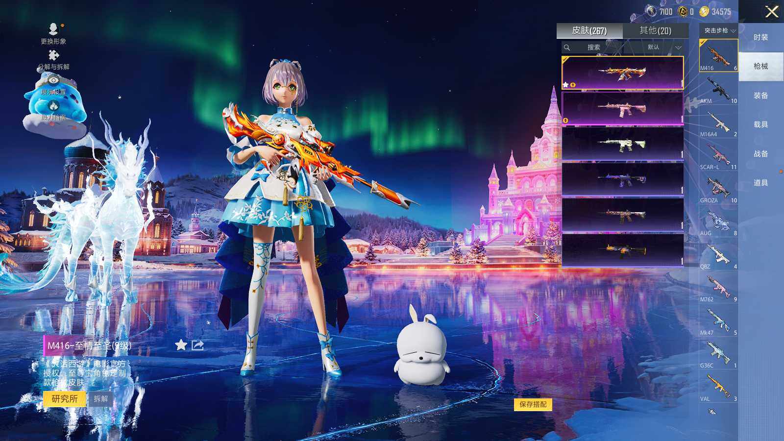 SCAR-L-童趣迷兔,SCAR-L-青春物语,M416-心之恋语,M416-至情至圣,GROZA-镜光银凌,AUG-超新星,AUG-星梦奇缘,M762-甜蜜誓约,M762-青锋波束,Kar98K-未来歌姬,Kar98K-巳巳如意,MG3-洛神天依