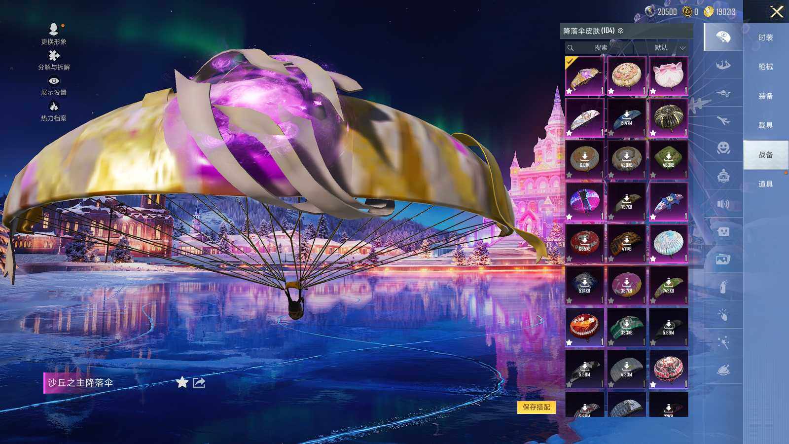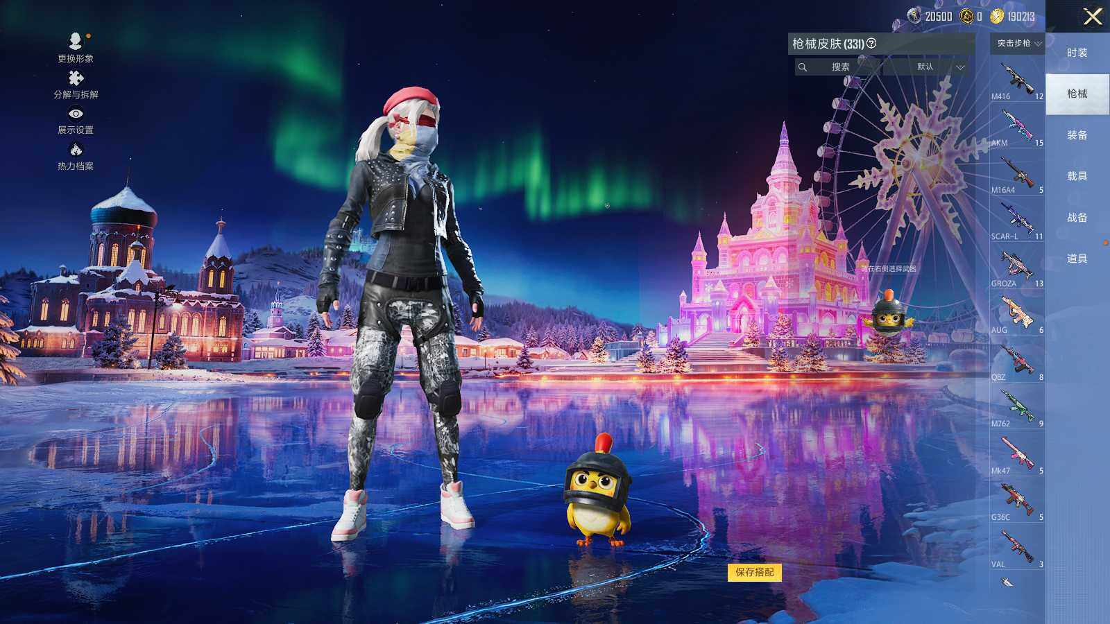 AKM-梦之光华,AKM-绿萝繁花,SCAR-L-青春物语,M416-五爪金龙,M416-心之恋语,M416-电玩时刻,GROZA-镜光银凌,AUG-暖羊咩咩,M762-青锋波束,UMP45-恐龙拽拽,UMP45-量子极限,Kar98K-巳巳如意,平底锅-桃粉嫣然