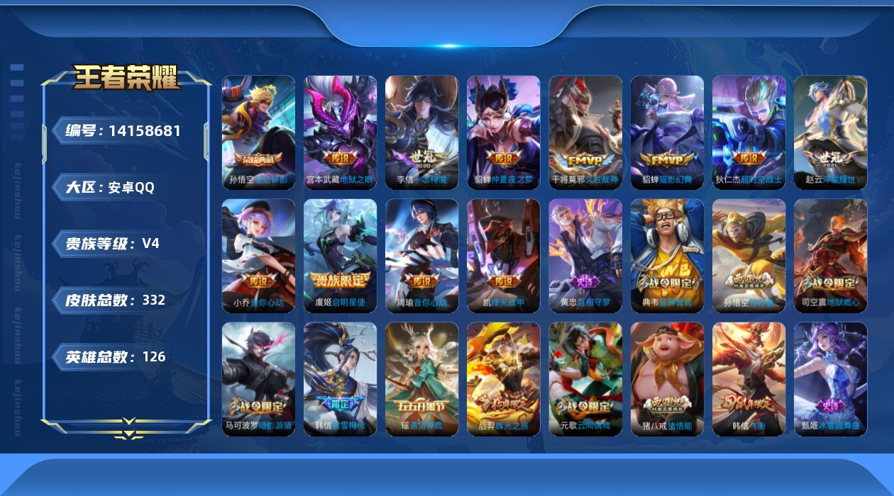[14158681]中路30段【特价急出/详情看图】:安卓Q-V4-至尊星耀III段位-125英雄-332皮肤-1典藏-11传说-87史诗