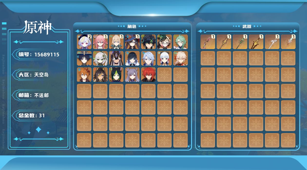 [15689115]59级/31黄/女主/19个五星角色/7个五星武器