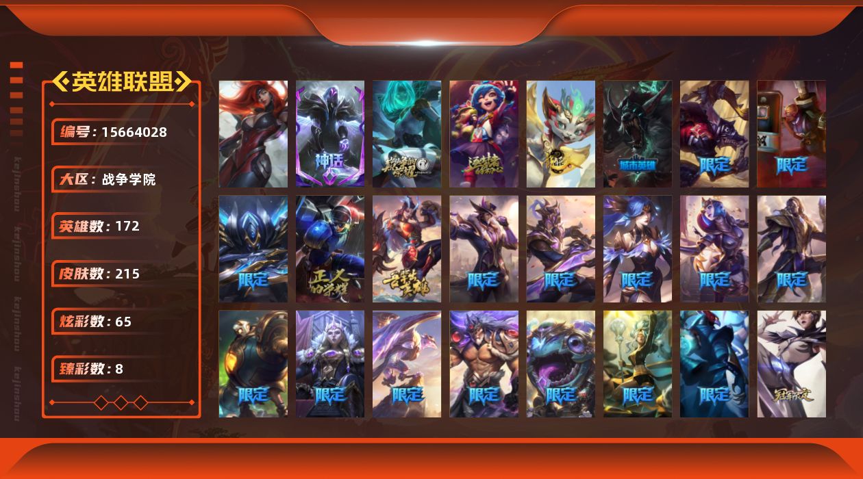[15664028]【店主推荐捡漏号!可直接换绑】未定级段位-172英雄-215皮肤-65炫彩-1终极-3神话-29限定-25传说-51史诗
