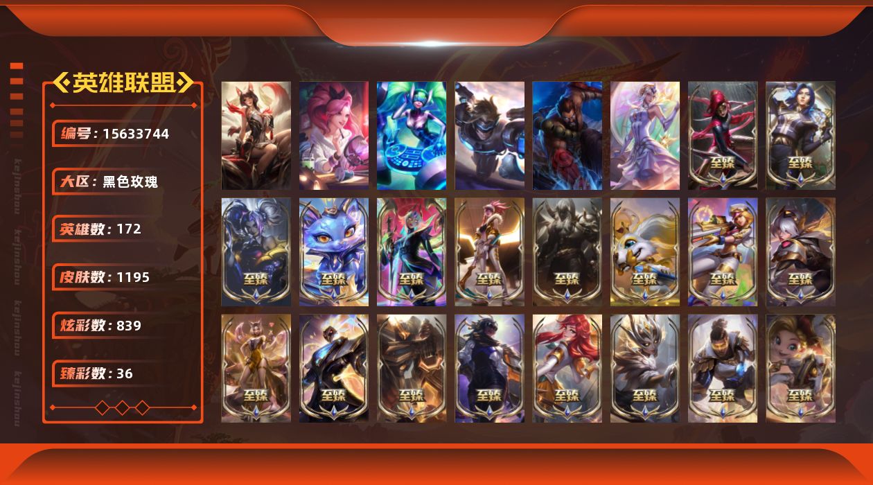 [15633744]【店主推荐捡漏号!可直接换绑】黄金段位-172英雄-1195皮肤-839炫彩-7终极-88神话-222限定-100传说-213史诗 【珍稀头像】:雪花头像,星守阿狸头像 【热门头像】:爱意绵绵头像,爱情之歌头像,觅心之翼奎因头像,爱情鸽头像 【卓越皮肤】:殿堂传奇阿狸 【至臻皮肤】:至臻魔女乐芙兰,至臻至高天凯尔,至臻灵魂莲华易,至臻灵魂莲华提莫,至臻绝息圣堂厄运小姐,至臻征服者贾克斯,至臻魅惑女巫莫甘娜,至臻西部魔影伊芙琳,至臻玉剑传说琴仙子娑娜,至臻源计划正义艾瑞莉娅,至臻海珀利安小队X09星环灵风迦娜,至臻电玩女神凯特琳,至臻双城之战2指挥官凯特琳,至臻花仙使者卡特琳娜,至臻黑色玫瑰假面舞会卡特琳娜,至臻焰执事布兰德,至臻灵能特工伊泽瑞尔,至臻天龙之子伊泽瑞尔,至臻KDA阿卡丽,至臻KDA阿卡丽(2022),至臻魔女阿卡丽,至臻王国机神玄武盖伦,至臻战斗学院蕾欧娜,至臻战斗学院拉克丝,至臻青花瓷拉克丝,至臻KDA阿狸,至臻KDA阿狸(2022),至臻绒毛菲兹,至臻绒毛菲兹(2022),至臻神龙尊者均衡之龙沃利贝尔,至臻福牛守护者菲奥娜,至臻太空律动节奏幻师璐璐,至臻青花瓷丽桑卓,至臻女帝黛安娜,至臻黑夜使者凯隐,至臻奥术师佐伊,至臻魔女婕拉,至臻KDAALLOUT卡莎,至臻海之歌萨勒芬妮,至臻真实伤害亚索,至臻墨之影武者亚索,至臻北极星钢影卡蜜尔,至臻魔域梦魇泽丽,至臻幻灵战斗猫金克丝,至臻真实伤害赛娜,至臻月蚀骑士赛娜,至臻未来战士卢锡安,至臻源计划阴劫,至臻腥红之月亚托克斯,至臻腥红之月亚托克斯(2022),至臻人工智能悠米,至臻未来战士锤石,至臻未来战士锤石(2022),至臻神凰行者烈羽焰凰霞,至臻源计划逆流塞拉斯,至臻星之守护者妮蔻,至臻斗魂觉醒派克,至臻神龙尊者炎龙瑟提,至臻魂蔷薇烈娜塔 【臻彩皮肤】:龙的传人李青见龙在田,银龙裁决泰隆夜中血影,剪纸仙灵嘉文四世日进斗金,定海神珍孙悟空四海扬威,天龙之子卡莎飞龙乘云,无畏骑士瑟庄妮赤子初心,冠军之箭艾希凯旋圣装,玉剑传说无极白虎,冰霜之刃艾瑞莉娅炫金,墨之影武者亚索金墨耀影,征服者阿利斯塔炫金,冠军掠夺者卡兹克凯旋圣装,冠军之血希瓦娜凯旋圣装,墨之影武者易金墨耀影,雾雨之刃锐雯,偶像歌手阿狸极地雪莲,神龙尊者圣龙李青龙腾云起,神龙尊者圣龙李青登龙,霸天战士雷恩加尔星啸天火,西部魔影卢锡安贝利尔之怠,