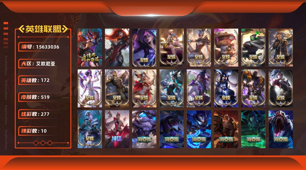 [15633036]【特价出售/店主推荐】未定级段位-172英雄-519皮肤-277炫彩-2终极-29神话-51限定-46传说-122史诗