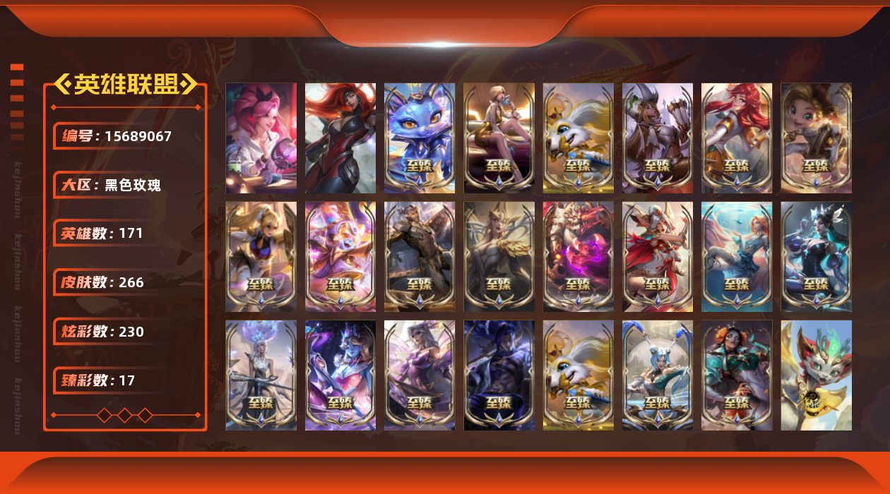[15689067]【店主推荐捡漏号】未定级段位-171英雄-266皮肤-230炫彩-4终极-22神话-51限定-37传说-34史诗