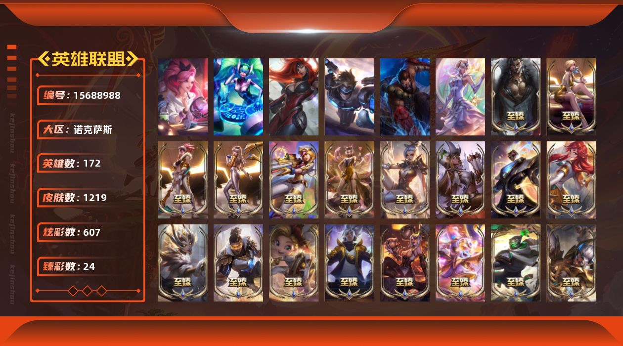 [15688988]【特价出售/店主推荐】未定级段位-172英雄-1219皮肤-607炫彩-8终极-55神话-218限定-115传说-215史诗