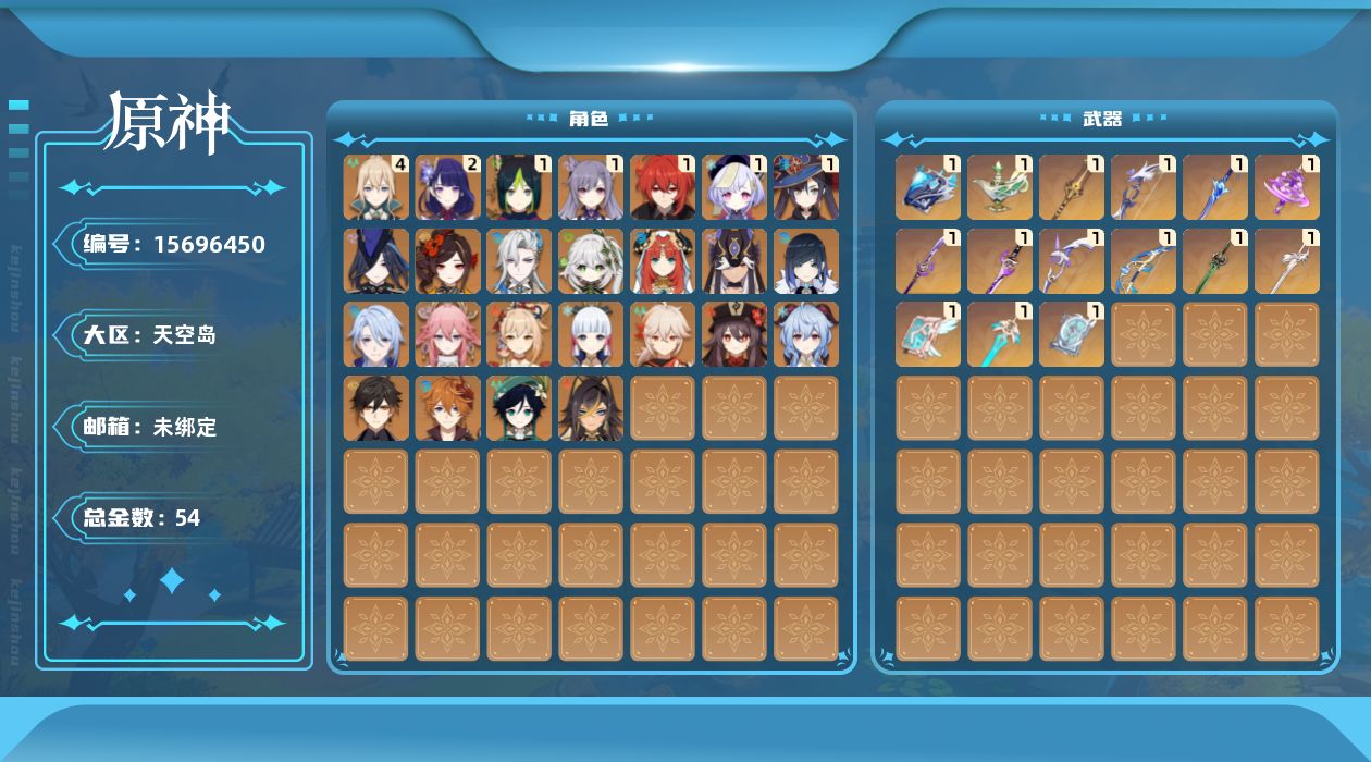 [15696450]57级/54黄/女主/26个五星角色/17个五星武器