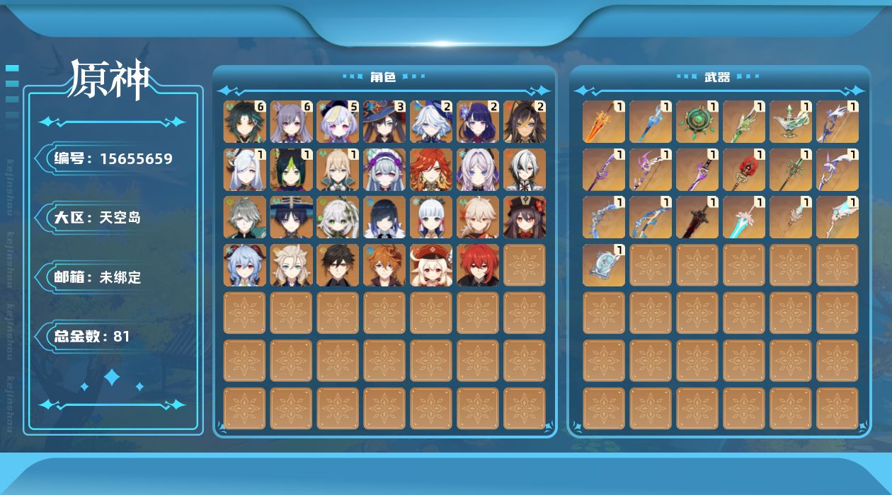 [15655659]60级/81黄/男主/28个五星角色/24个五星武器