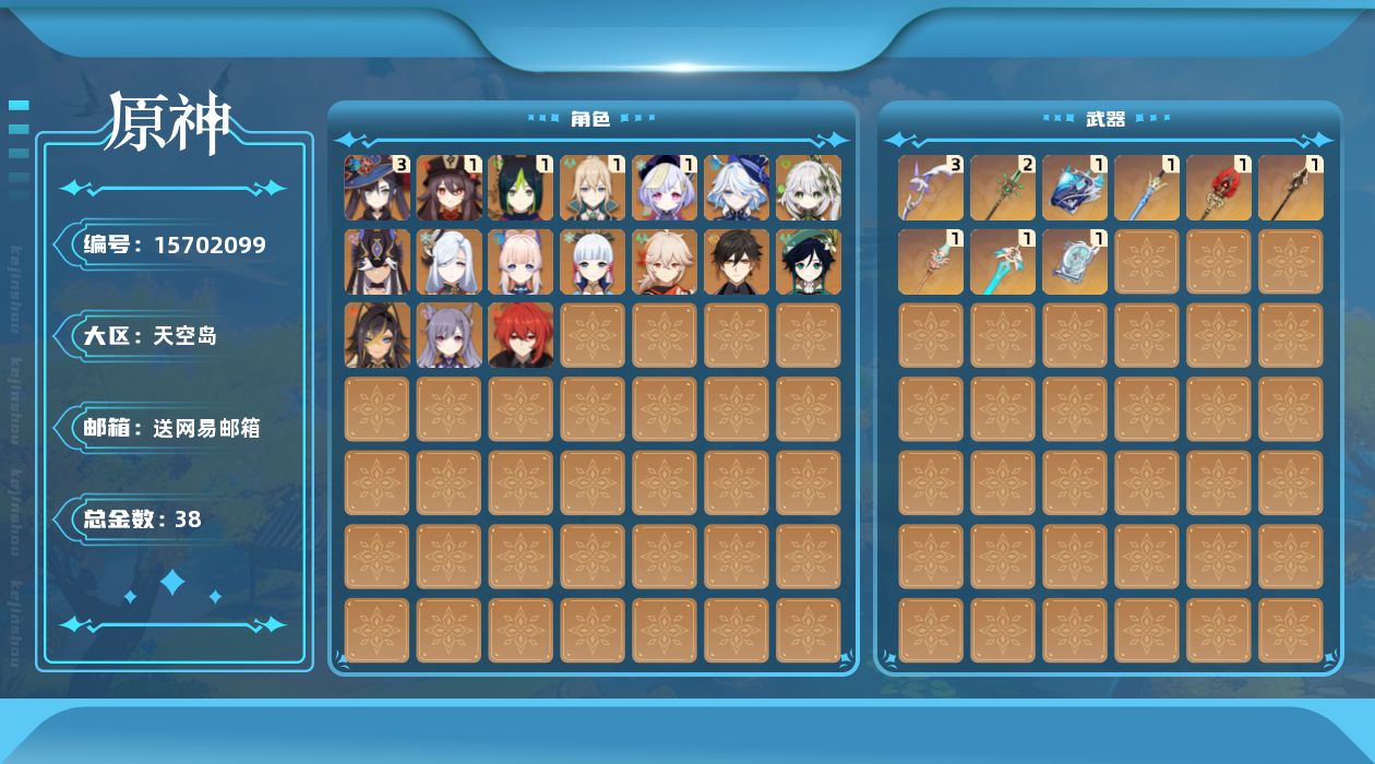 [15702099]58级/38黄/男主/17个五星角色/11个五星武器