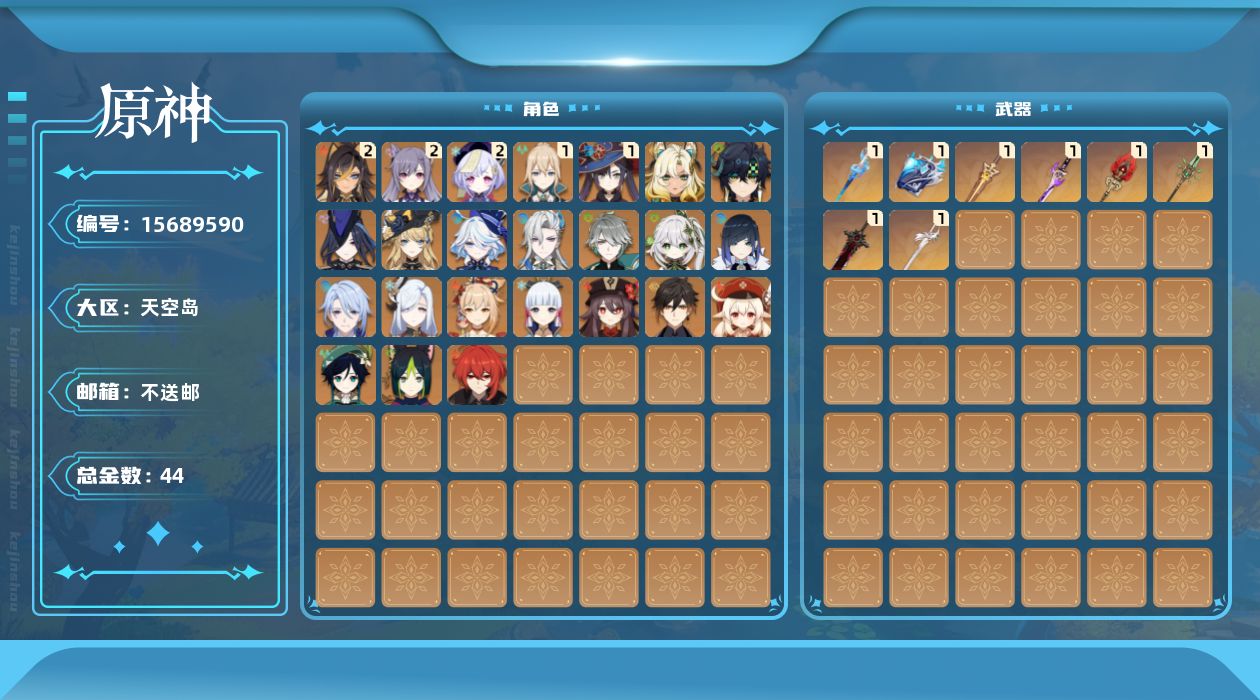 [15689590]60级/44黄/女主/24个五星角色/12个五星武器