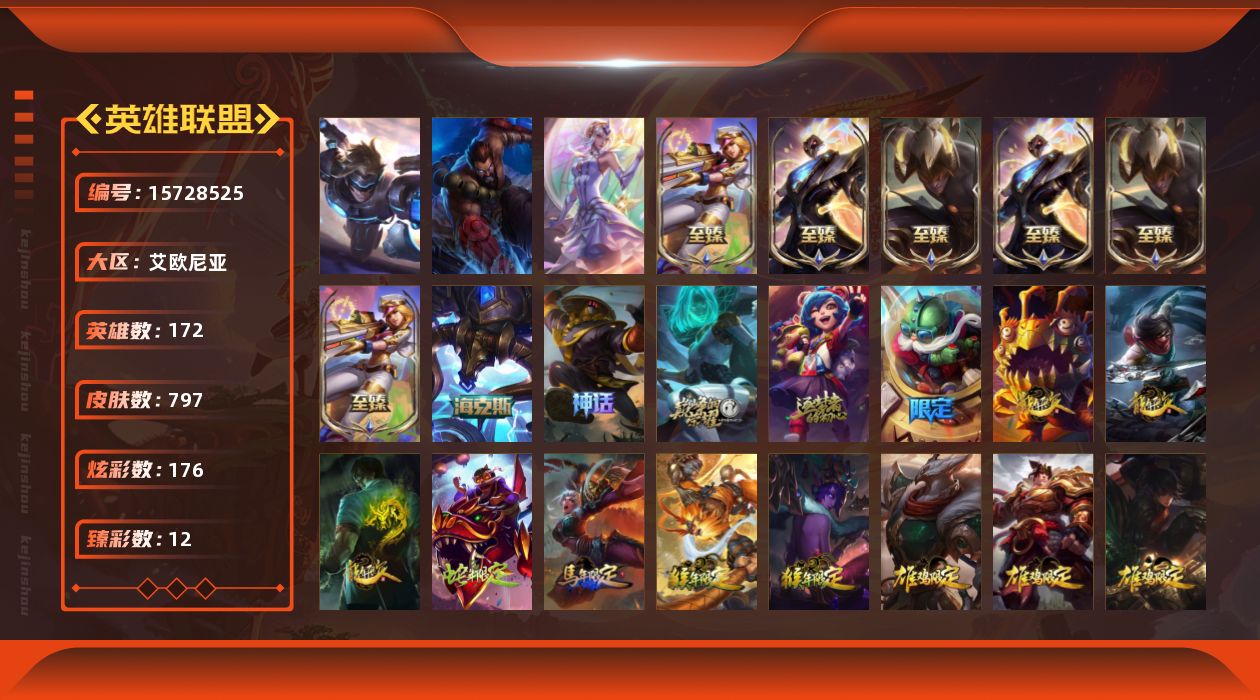 [15728525]可二次【特价出售/店主推荐】青铜段位-172英雄-797皮肤-176炫彩-3终极-10神话-170限定-62传说-205史诗