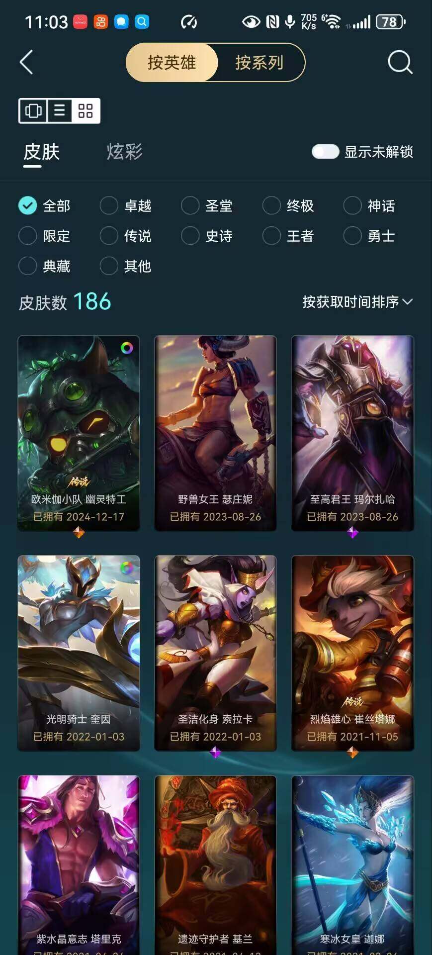 [15734653]可二次【特价出售/店主推荐】未定级段位-101英雄-186皮肤-6炫彩-0终极-2神话-34限定-15传说-47史诗