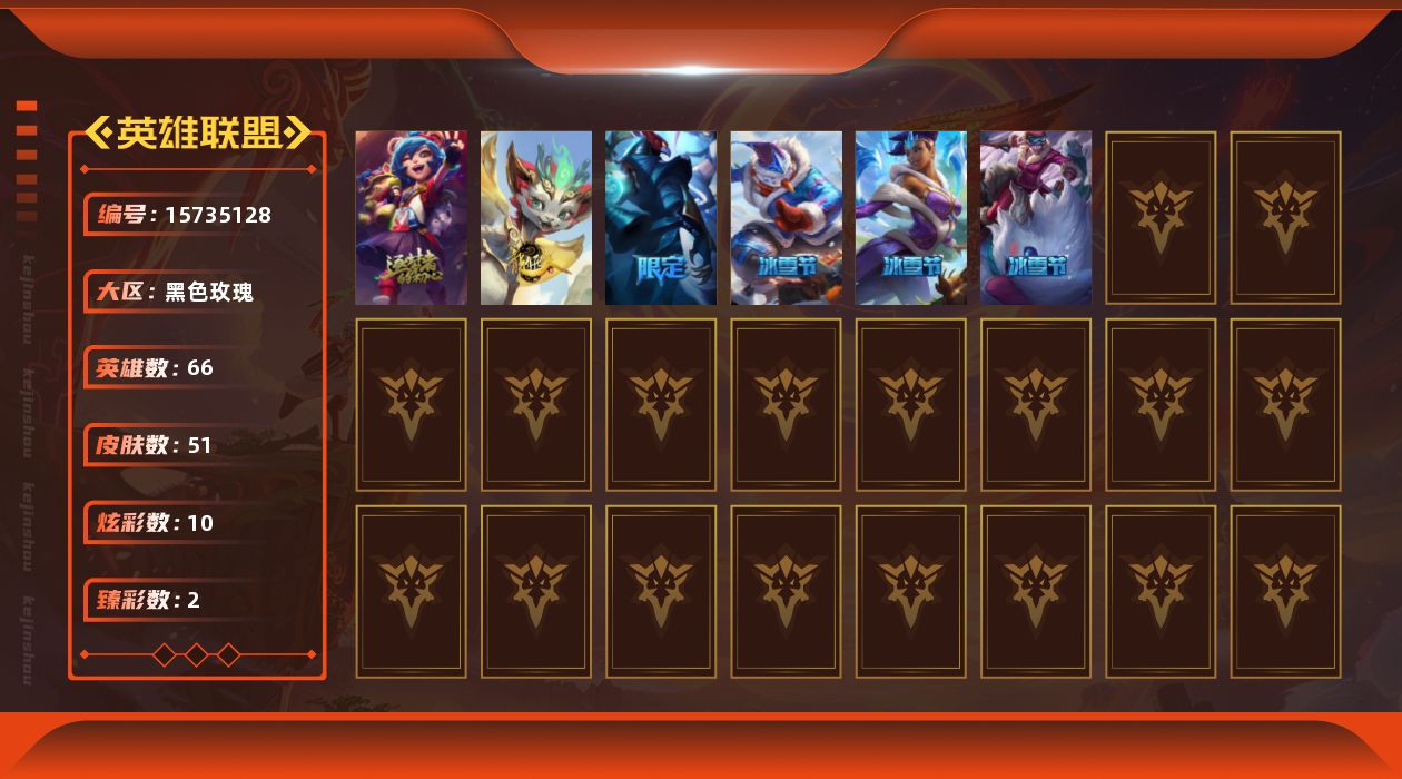 [15735128]【特价出售/店主推荐】未定级段位-66英雄-51皮肤-10炫彩-0终极-2神话-5限定-5传说-13史诗