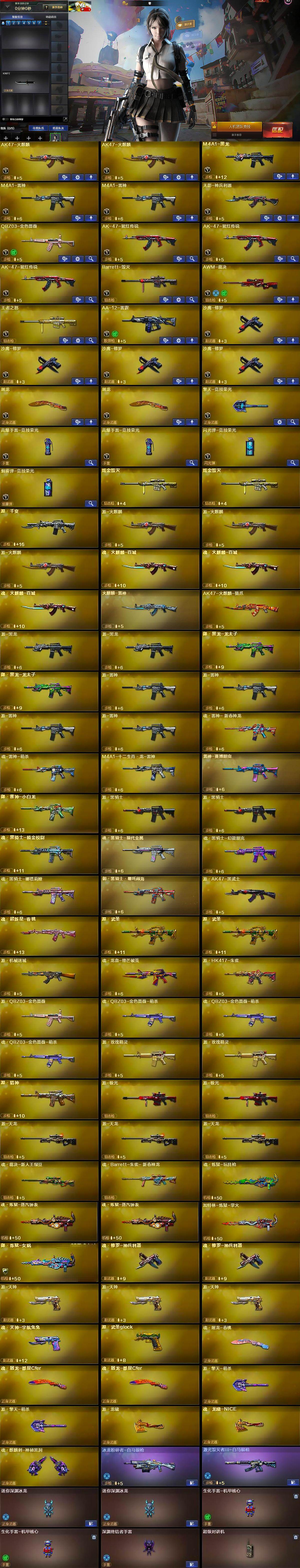 【英雄级武器】:AK47-火麒麟*2,M4A1-黑龙,M4A1-雷神*2,无影-神兵利器,QBZ03-金色蔷薇,AK-47-猩红传说*3,Barrett-毁灭,AWM-裁决,王者之怒-觉醒版,AA-12-雷霆,沙鹰-修罗*4,屠龙*2,擎天-竞技荣光,高爆手雷-竞技荣光*2,闪光弹-竞技荣光,烟雾弹-竞技荣光