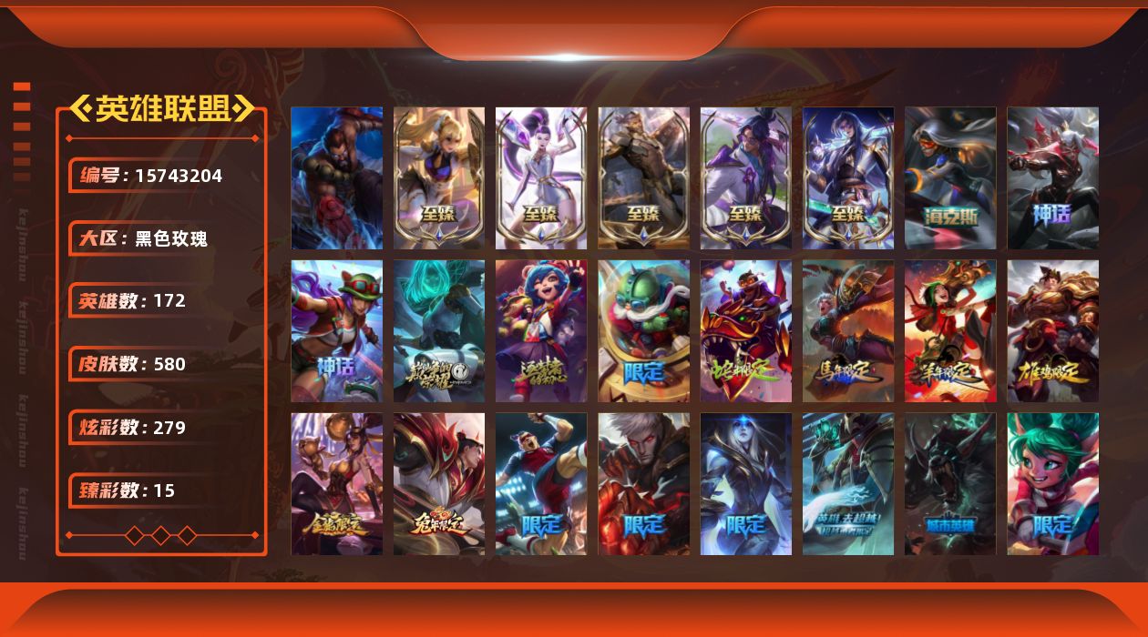 [15743204]【店主推荐捡漏号!可直接换绑】铂金段位-172英雄-580皮肤-279炫彩-1终极-15神话-87限定-48传说-143史诗
