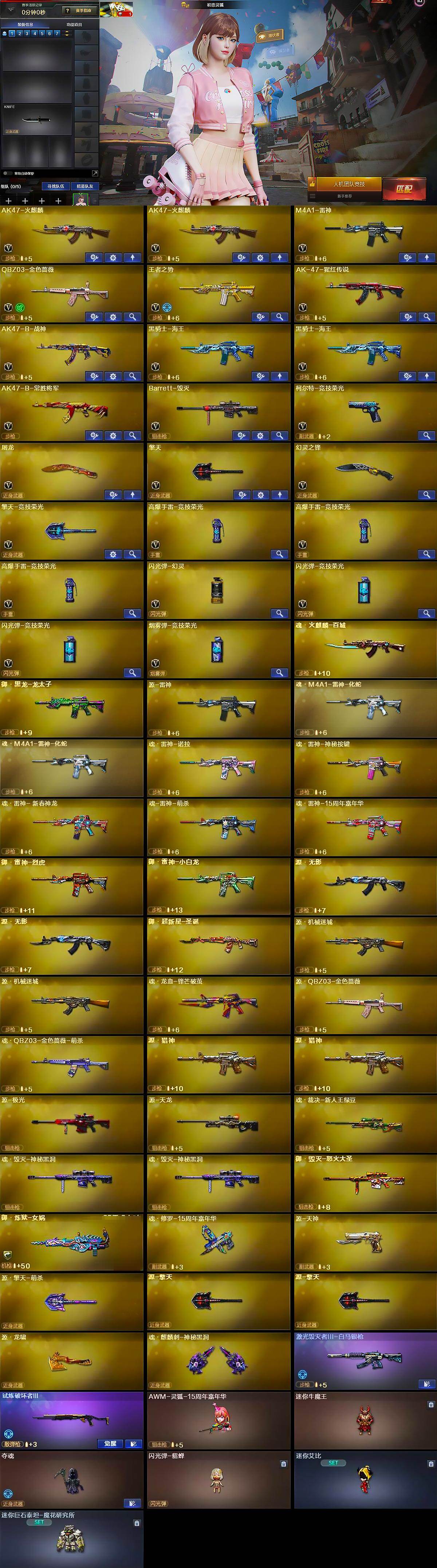 【英雄级武器】:AK47-火麒麟*2,M4A1-雷神,QBZ03-金色蔷薇,王者之势-觉醒版,AK-47-猩红传说,AK47-B-战神,黑骑士-海王*2,AK47-B-常胜将军,Barrett-毁灭,柯尔特-竞技荣光,屠龙,擎天,幻灵之锋,擎天-竞技荣光,高爆手雷-竞技荣光*3,闪光弹-幻灵,闪光弹-竞技荣光*2,烟雾弹-竞技荣光