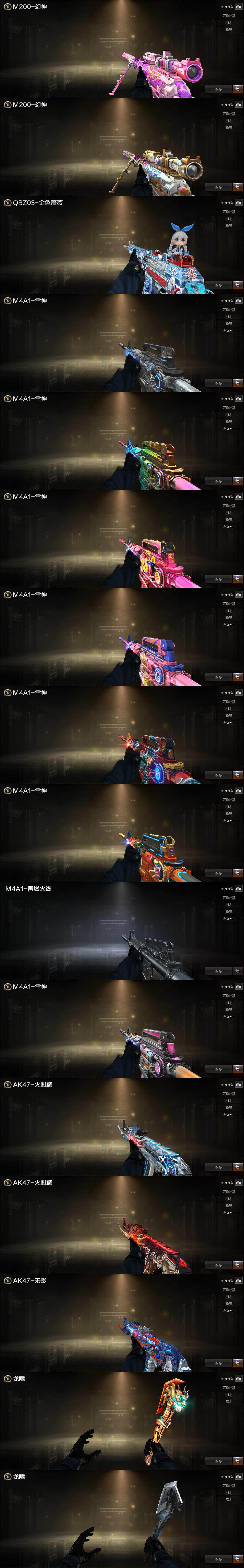 【热门武器】:QBZ03-金色蔷薇,M200-幻神,M4A1-黑骑士,加特林-炼狱,COP 357-幻灵,沙鹰-修罗*3