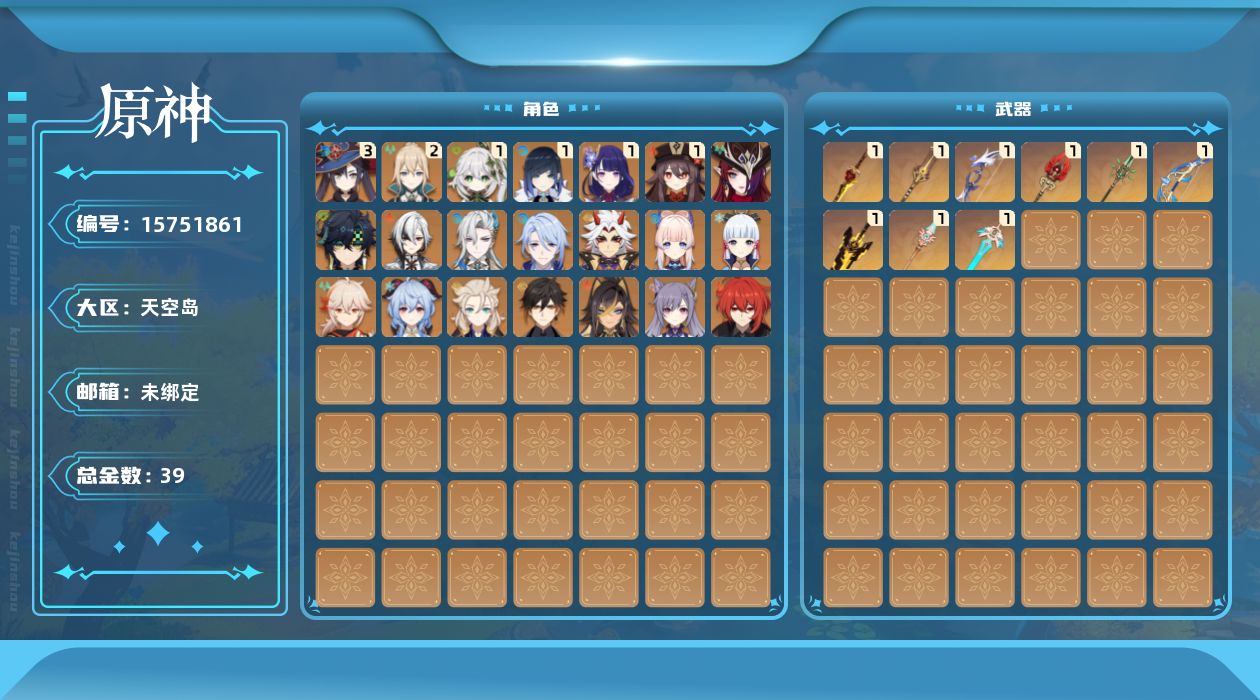 [15751861]59级/39黄/男主/21个五星角色/9个五星武器