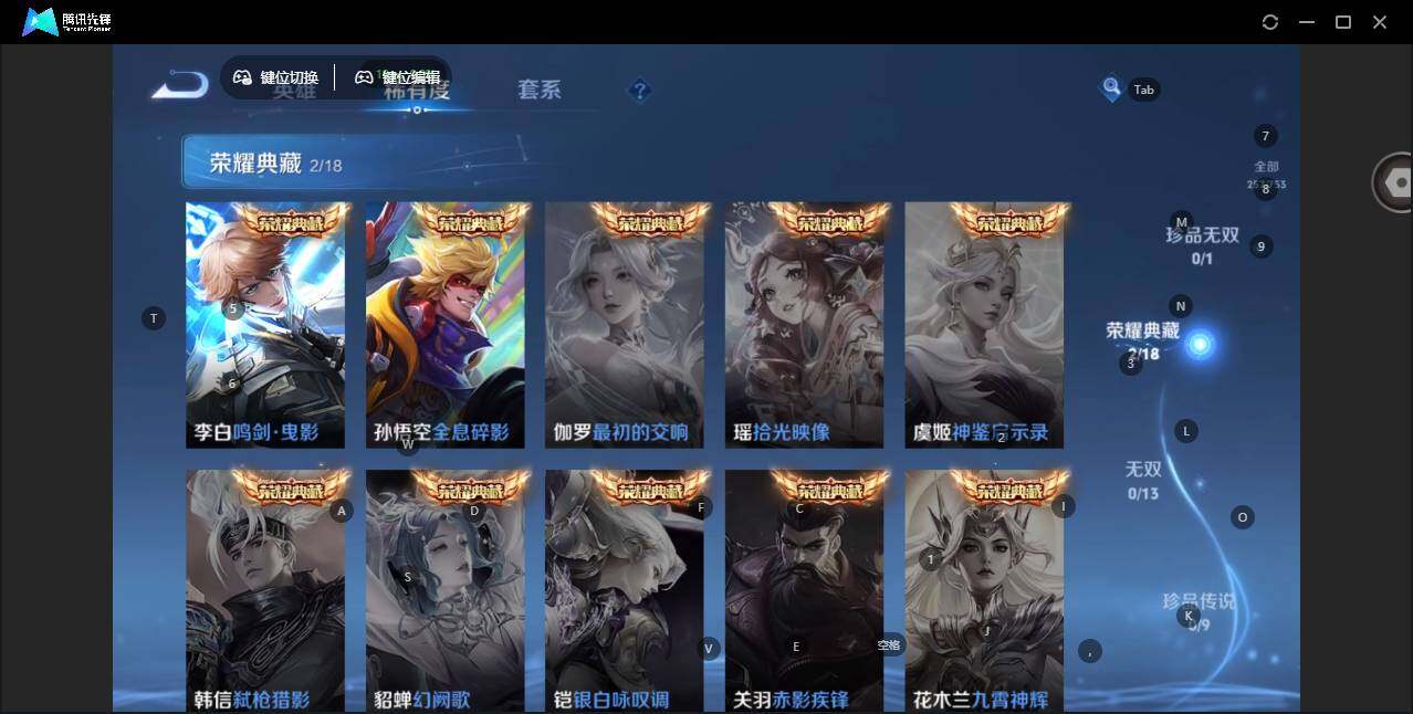 裴擒虎李小龙,上官婉儿梁祝,赵云龙胆,裴擒虎天狼狩猎者,百里玄策白虎志,孙悟空大圣娶亲,孙悟空至尊宝,雅典娜神奇女侠,芈月白晶晶,孙悟空美猴王,大乔白鹤梁神女,孙悟空孙行者,妲己时之奇旅,桑启鸣野蒿