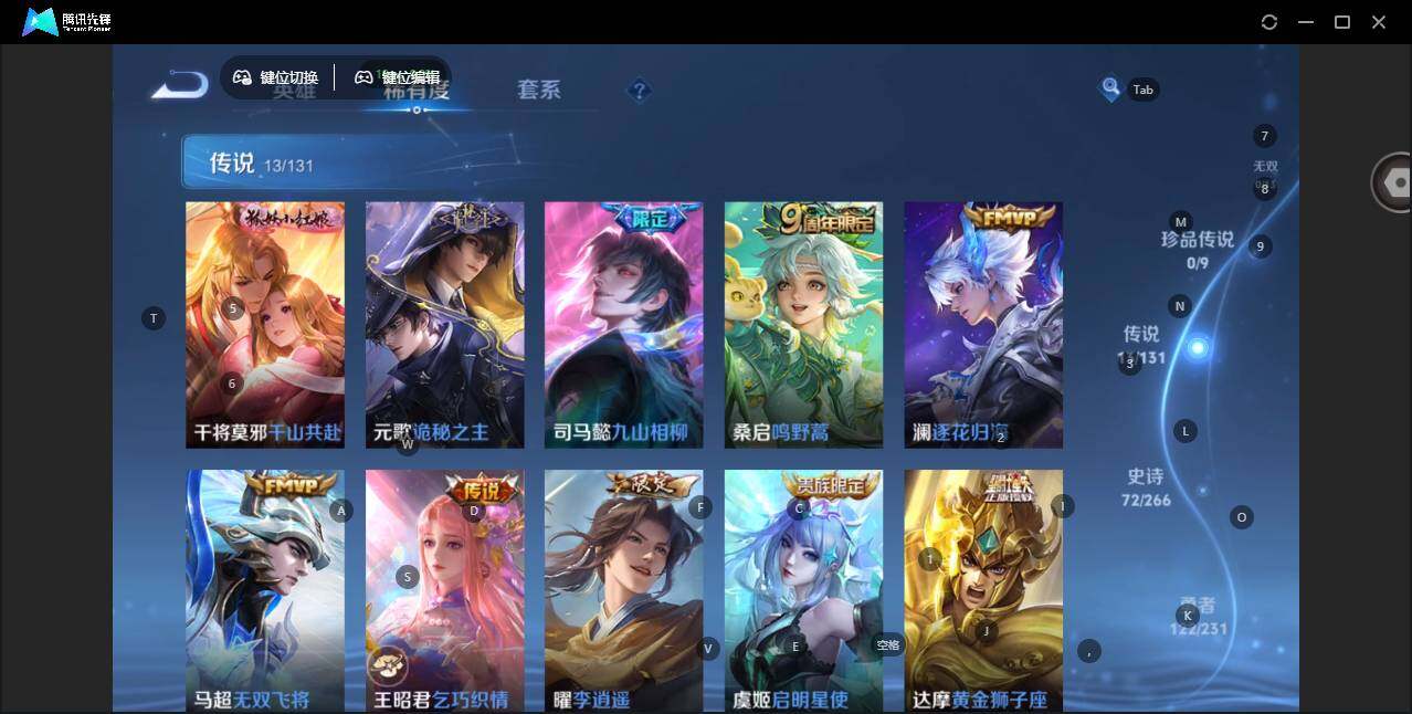 【传说皮肤】:干将莫邪千山共赴,元歌诡秘之主,司马懿九山相柳,桑启鸣野蒿,澜逐花归海,马超无双飞将,王昭君乞巧织情,曜李逍遥 ,虞姬启明星使,达摩黄金狮子座,百里玄策白虎志,李白凤求凰,吕布天魔缭乱
