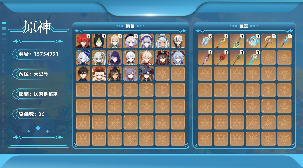 [15754991]60级/36黄/男主/19个五星角色/11个五星武器