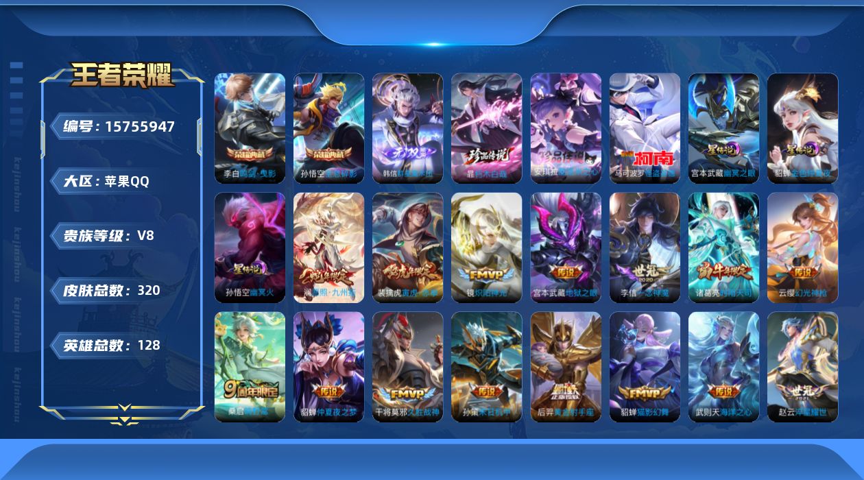 [15755947]可二次【特价急出/详情看图】苹果Q-V8-永恒钻石V段位-128英雄-320皮肤-2典藏皮肤-1无双-3珍品传说-3星元-23传说-89史诗