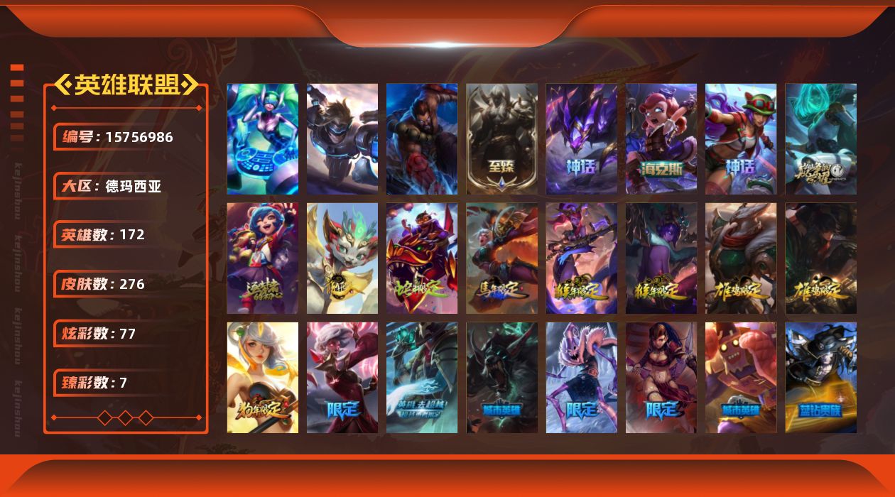 [15756986]可二次【特价出售/店主推荐】未定级段位-172英雄-276皮肤-77炫彩-3终极-7神话-55限定-23传说-60史诗
