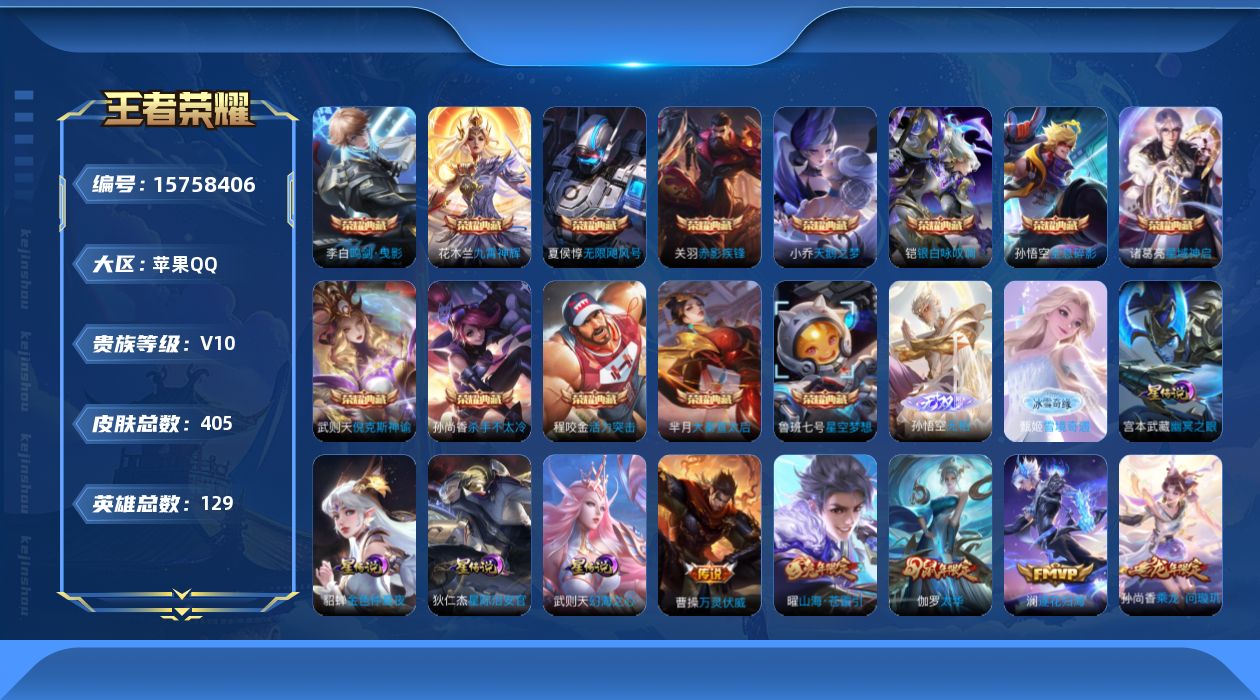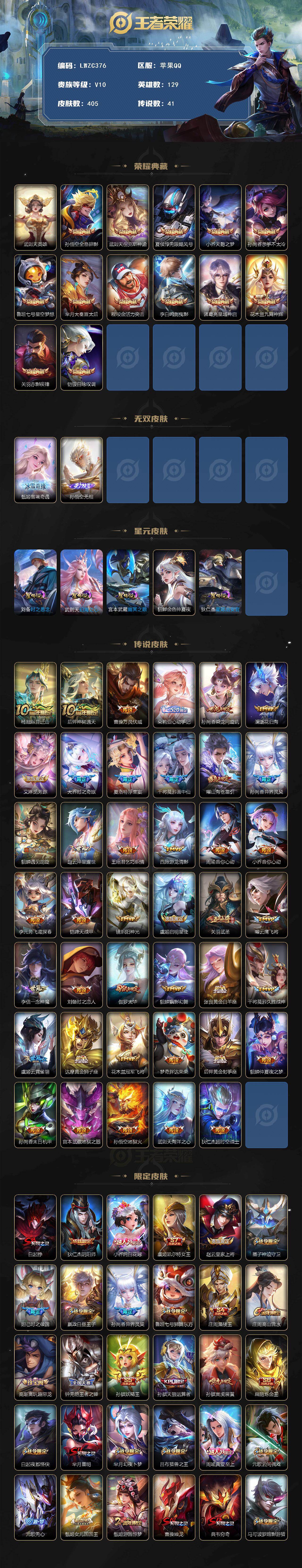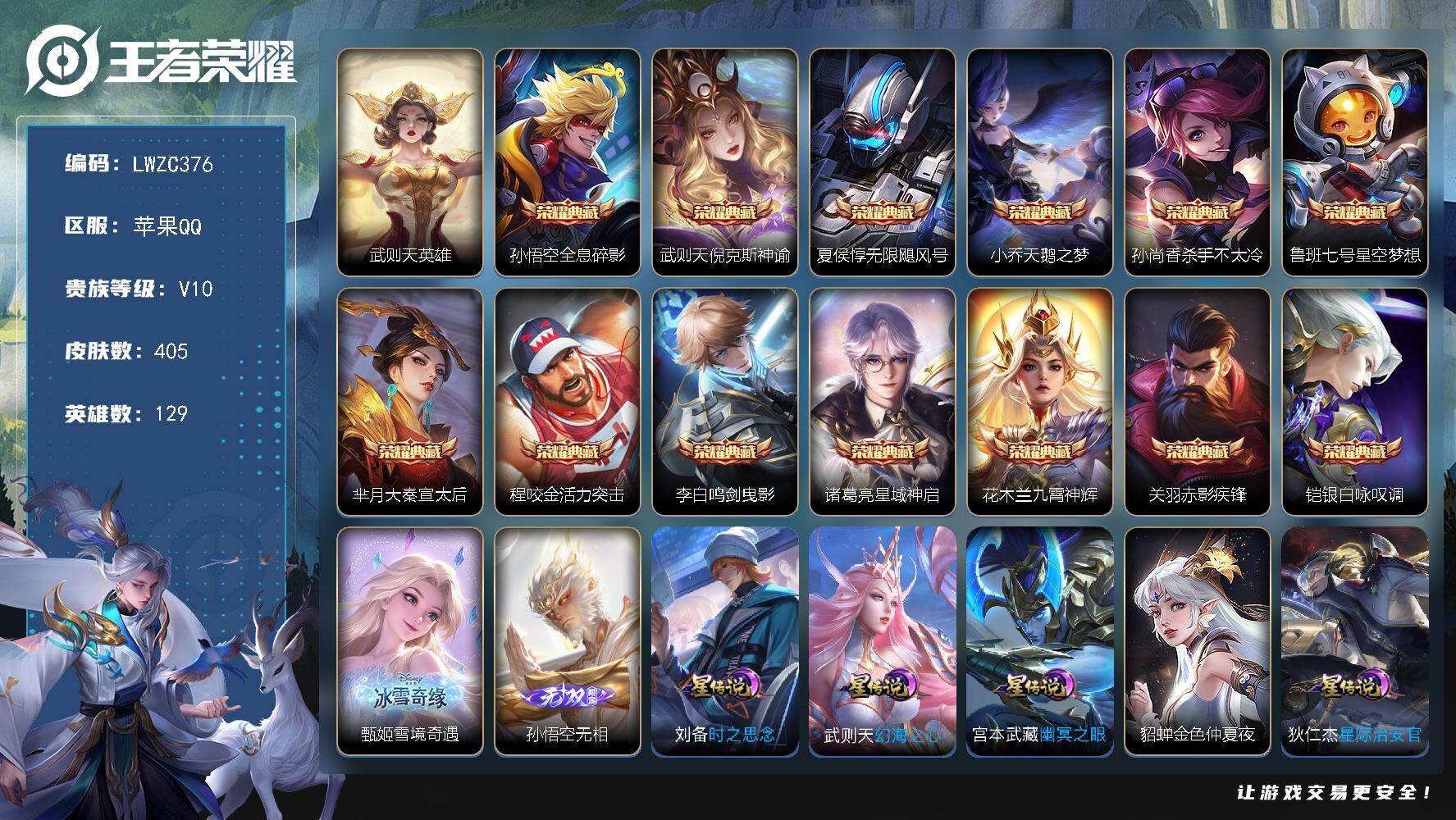[15758406]【特价出售/店主推荐】中路36段,苹果Q-V10-永恒钻石II段位-129英雄-405皮肤-13典藏皮肤-1典藏英雄-2无双-5星传说-41传说-118史诗